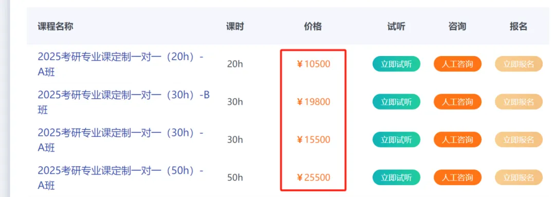 (图片为某辅导机构专业课收费标准)