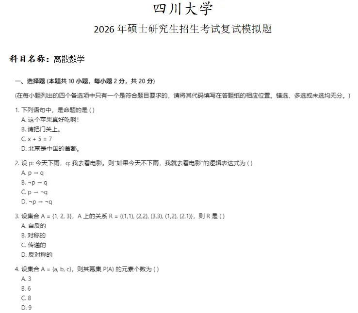 >四川大学离散数学考研复试真题模拟