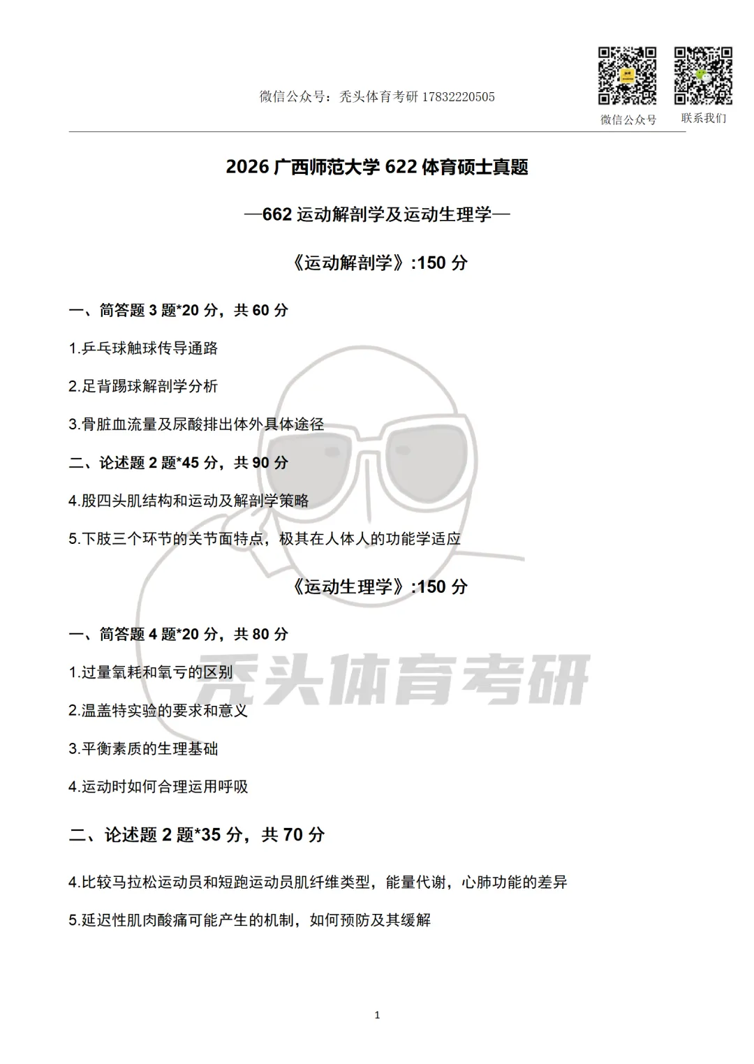 体育考研真题丨广西师范大学622初试真题(2026)