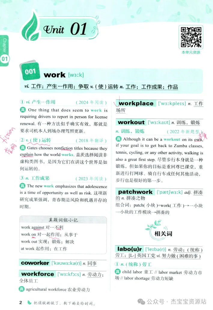 宝宝们!!这本书最绝的地方就是它的分层串记!!😭 它把单词分成核心词(2514个)、超低频词(1178个),还有加分宝里的简单词、超纲词、0频词!!重点是核心词部分,直接给你分成493组词群,每组围绕一个主词,把形近词、同根词、相关词串成一串!!🥳 比如背一个“predict预测”,顺带就把“contradict反驳”“verdict裁决”“dictation听写”全拿下了!!这不比孤立背单词爽一百倍!!🤣 而且真题考过的释义下面都划了线,考过几次、怎么搭配的全标得清清楚楚,直接告诉你“这个词真题就这么考”!📚