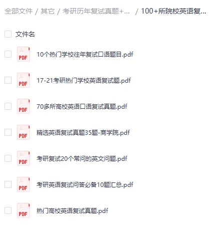 100+院校考研英语复试真题,文档目录如下,完整版下载方式见文末。