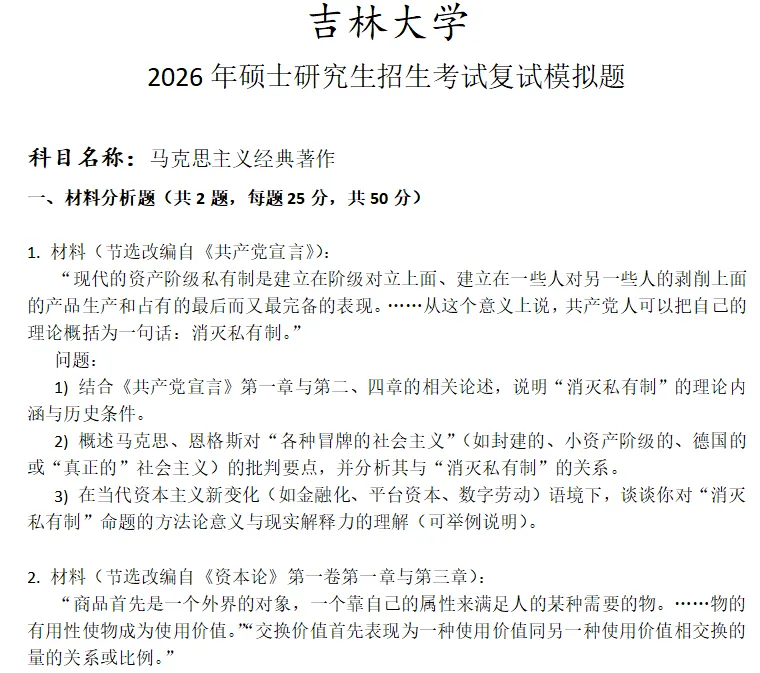 当前位置:首页>考研真题>吉林大学马克思主义经典著作考研复试真题模拟