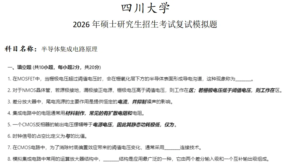 >四川大学半导体集成电路原理考研复试真题模拟