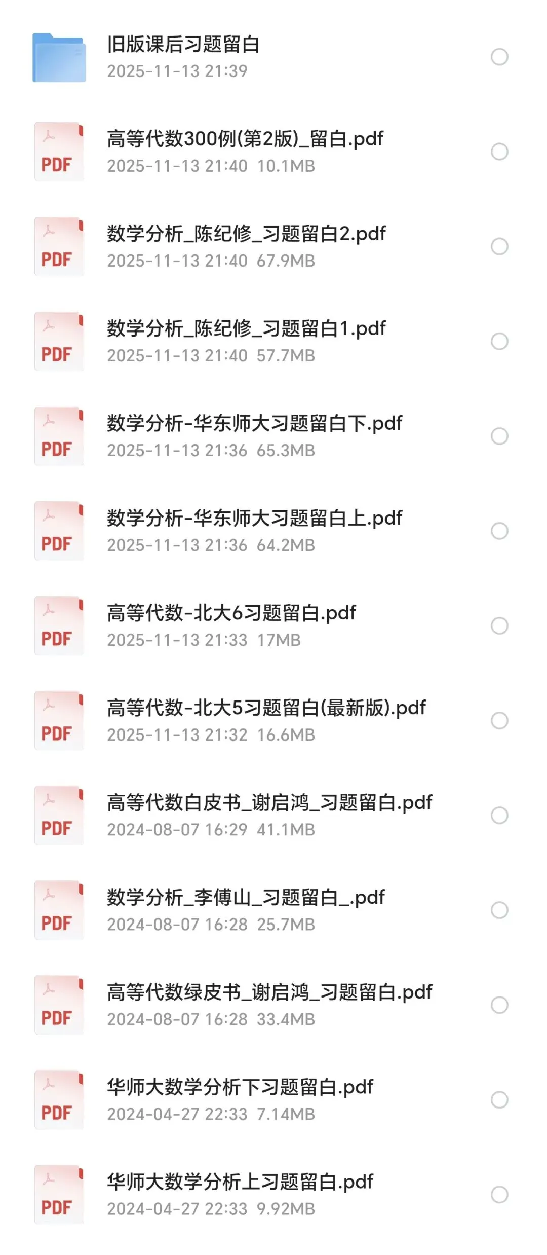 『数学分析与高等代数习题留白』