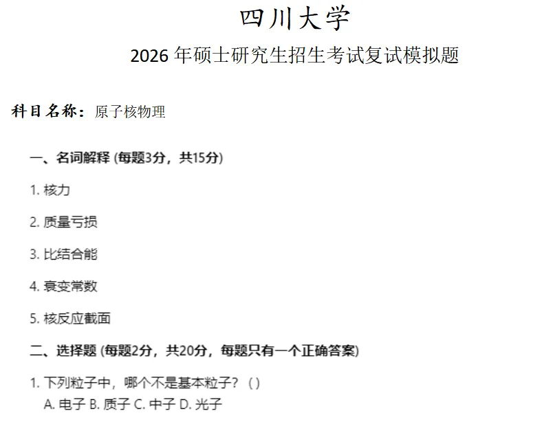 >四川大学原子核物理考研复试真题模拟
