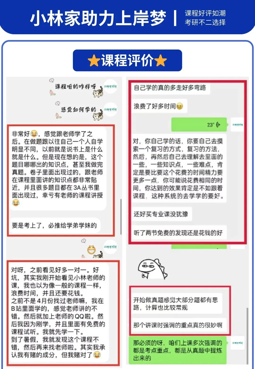 从定制化的备考规划、精准的考点精讲,到全真模拟面试、个性化问题答疑,小林家考研全程为你保驾护航,帮你避开备考误区,精准攻克难点,以最优状态迎战复试,稳稳拿下上岸入场券!