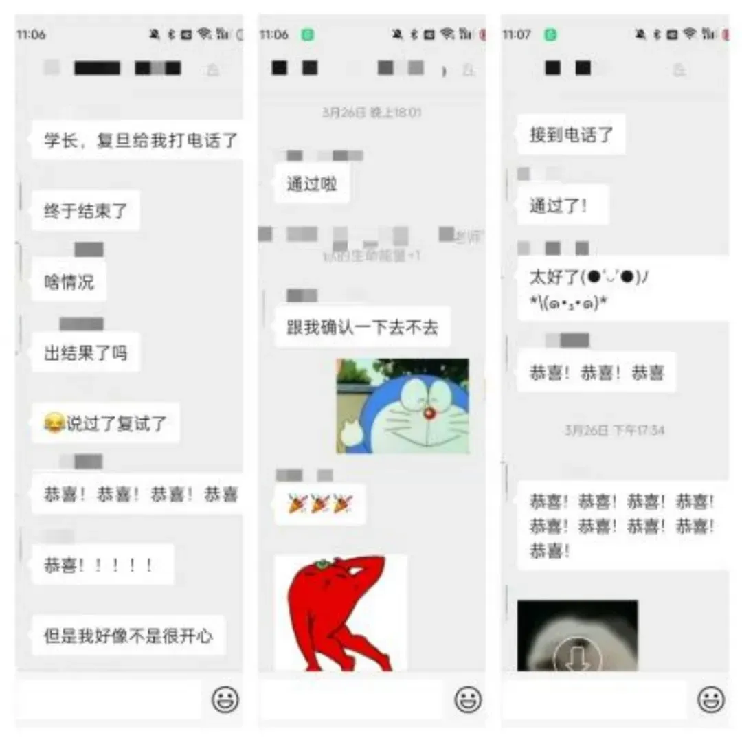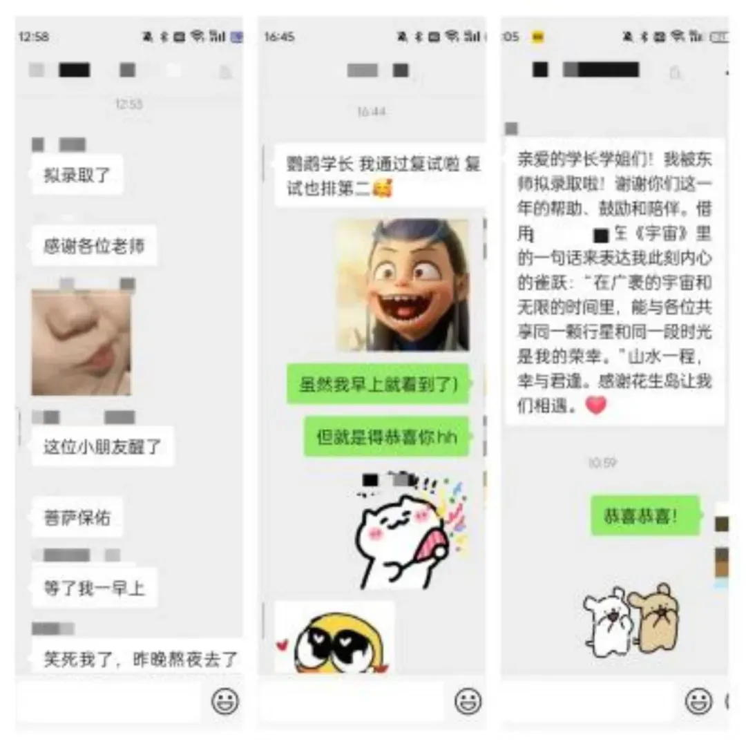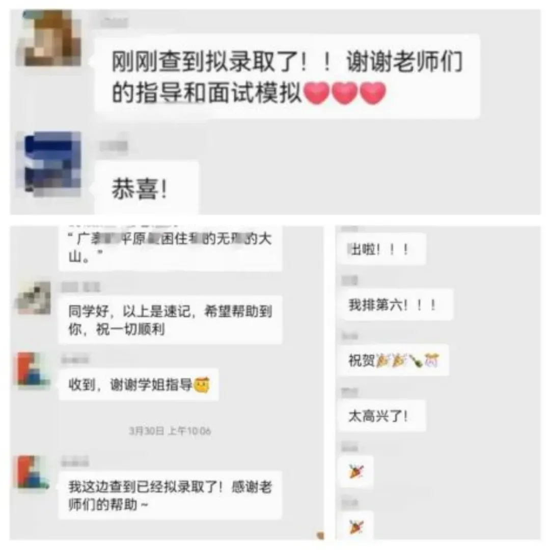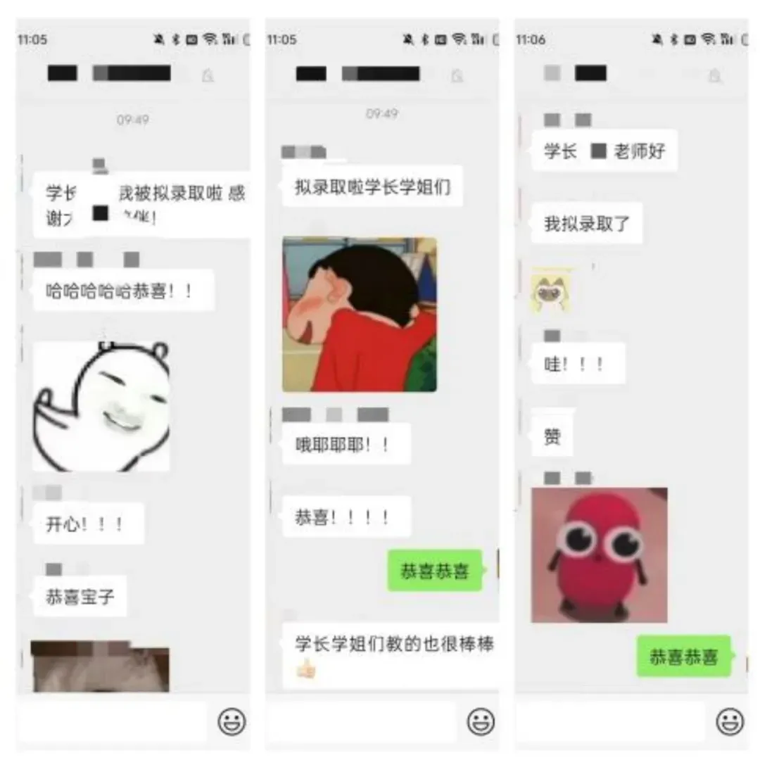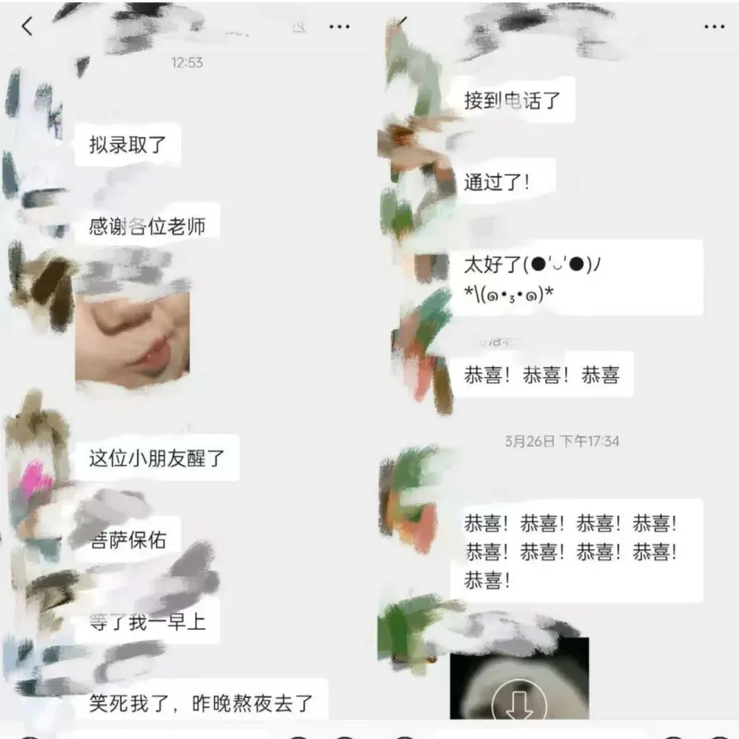 七年来,我们陪伴了200+同学通过初试,100+同学成功上岸。每一年都收到同学们欢喜的上岸信息: