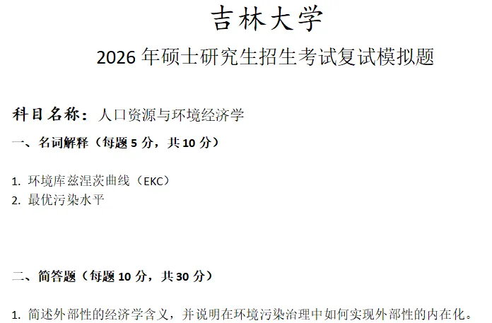当前位置:首页>考研真题>吉林大学人口资源与环境经济学考研复试真题模拟