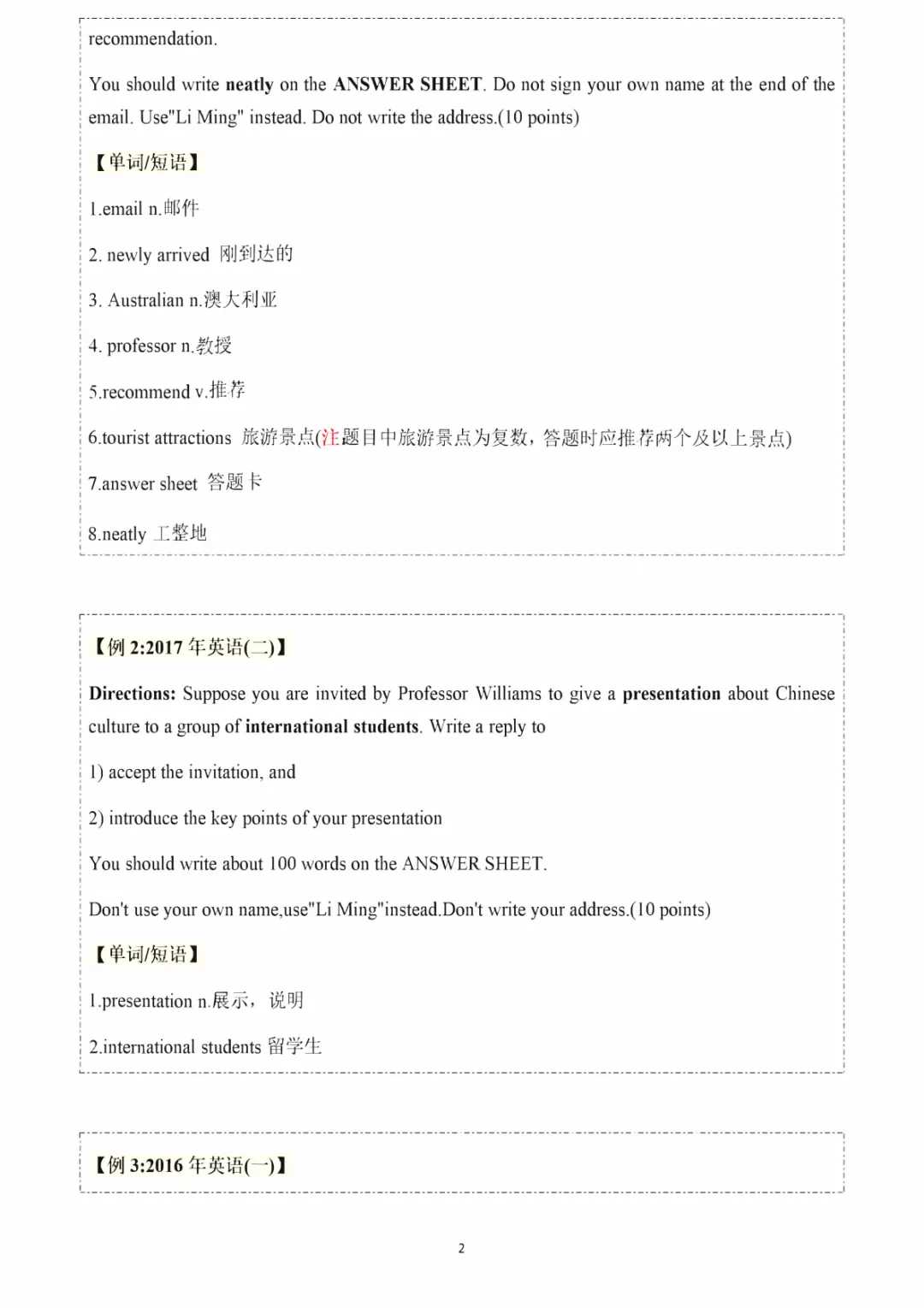 最关键的是,对于老师给出的范文和题目,可能会看不懂,或者存在一些生词,所以帮大家把这些可能的生词标注在了旁边,并且对于范文中用的一些句式和词组,也给大家标注了出来,方便大家进行学习~