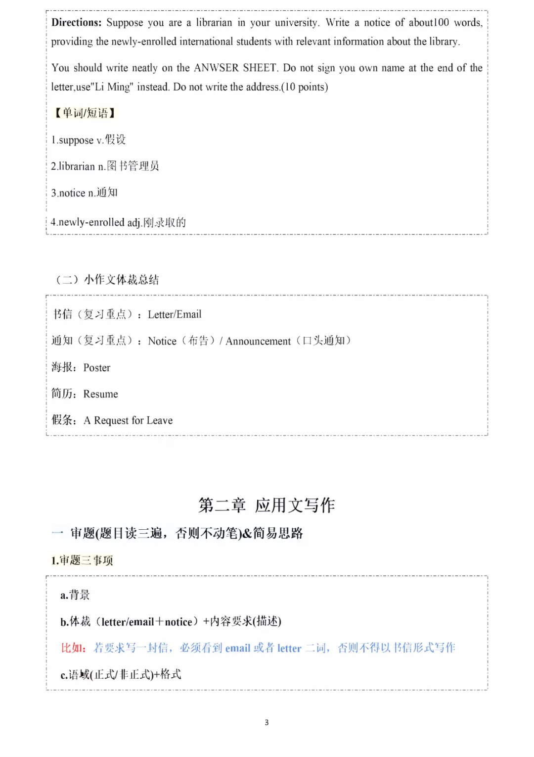 ⚠️笔记总结了老师提到的小作文命题形式和写作方法。