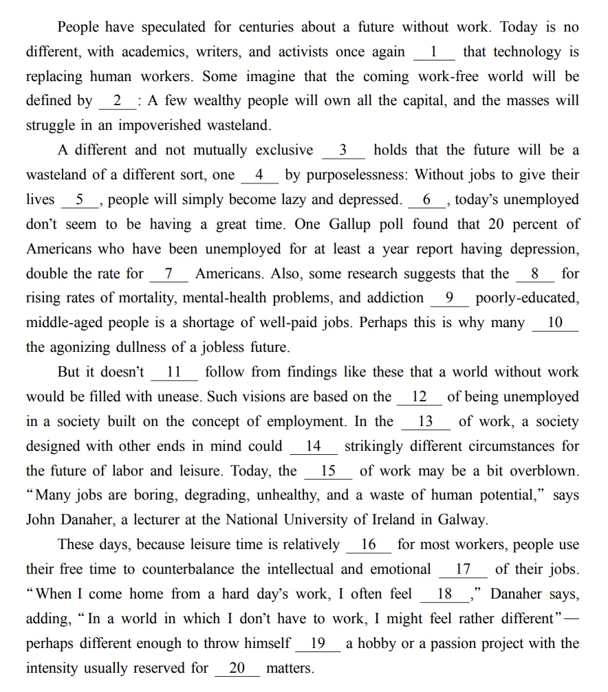 注:-free 作为否定后缀,表示 “没有… 的、不含… 的、免除… 的”,因此work-free 意为 “没有工作的、无需工作的”。