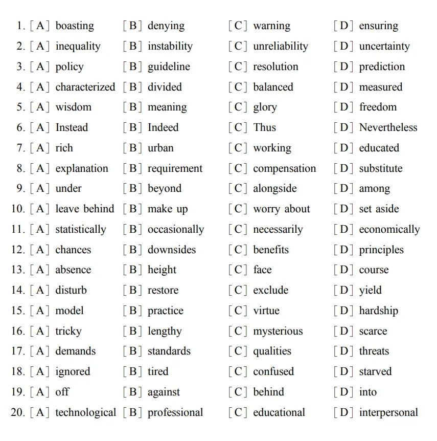 注:这四个词均由否定前缀 + 形容词词根 + 名词后缀构成:in- / un- 表示否定,-ity / -ty 作为名词后缀,将形容词equal、stable、reliable、certain分别变为表示性质状态的抽象名词。