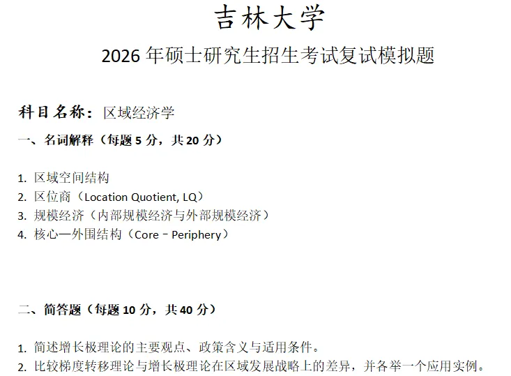 当前位置:首页>考研真题>吉林大学区域经济学考研复试真题模拟