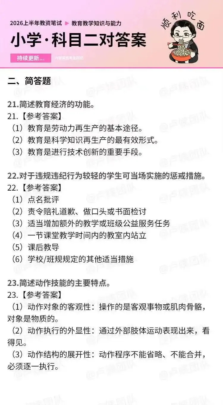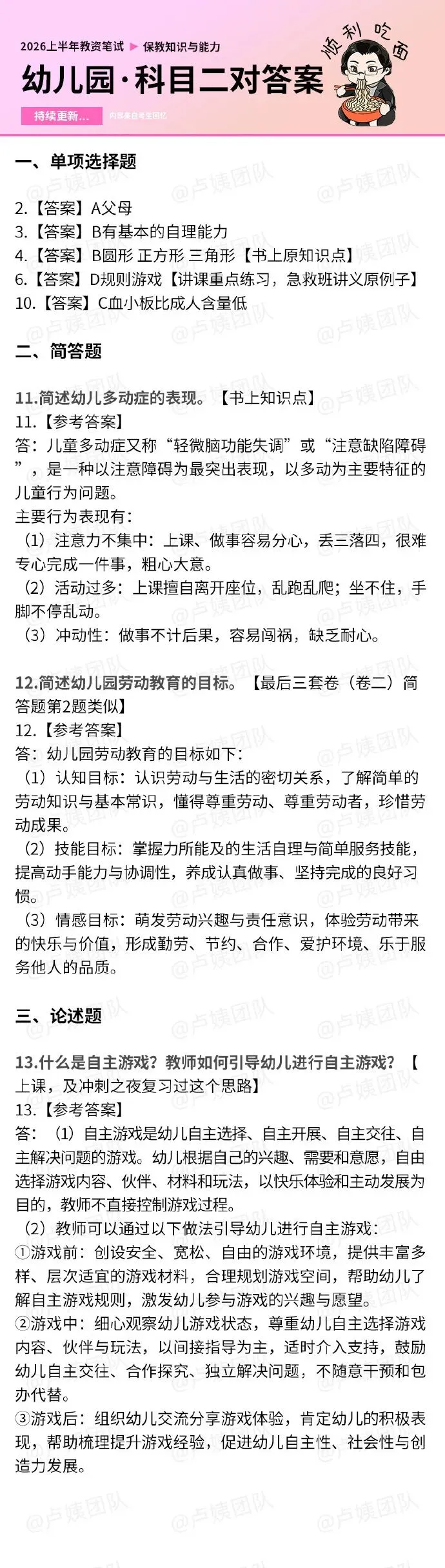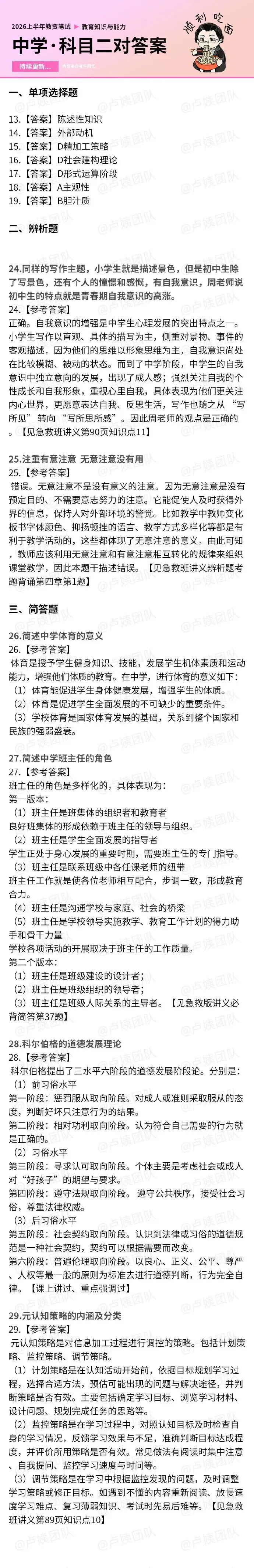 拾光君后续会持续更新各类考试备考资料,关注我不迷路哦~2026上半年教资笔试科目二幼儿园《保教知识与能力》、小学《教育教学知识与能力》、中学《教育知识与能力》已经结束了,