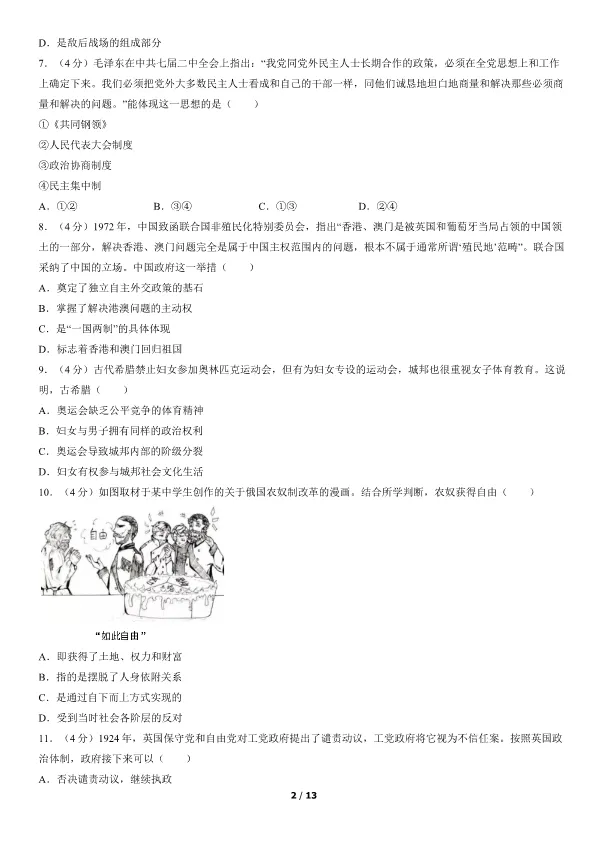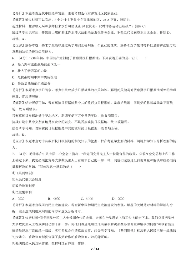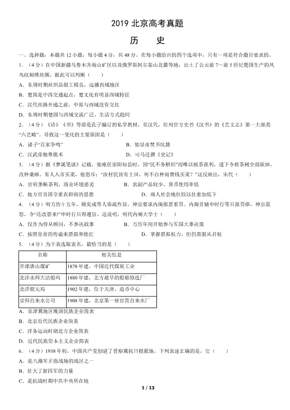 2019北京高考真题历史真题(有答案)【可下载】