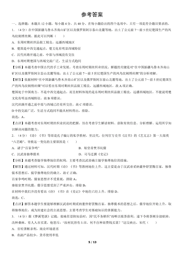 >2019北京高考真题历史真题(有答案)【可下载】