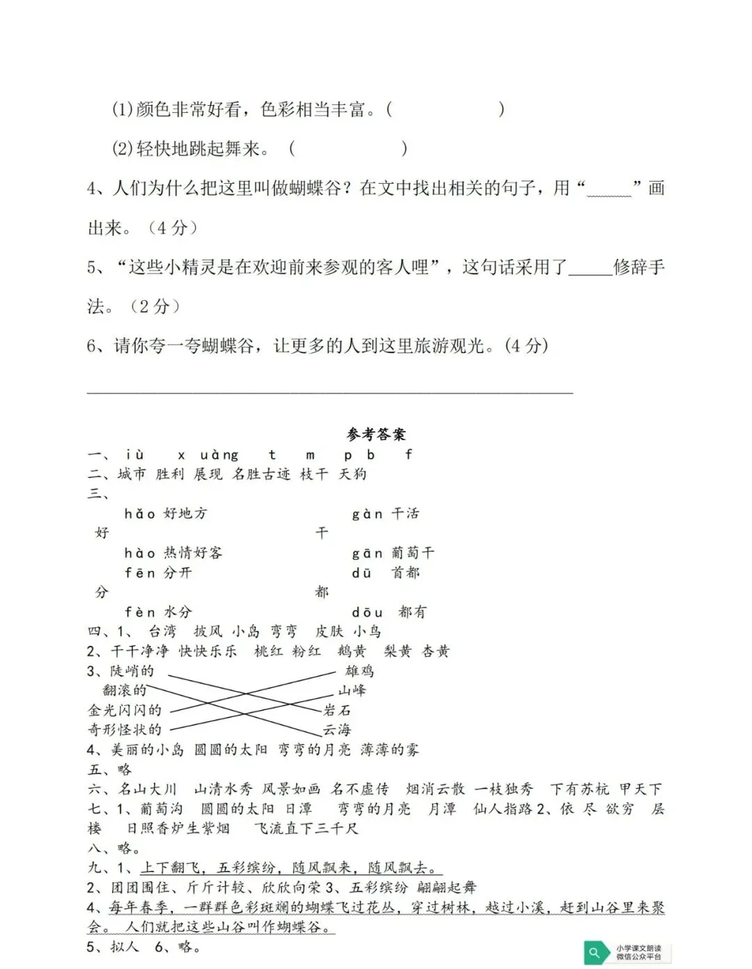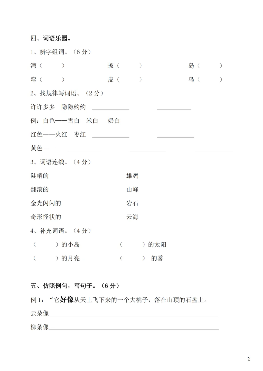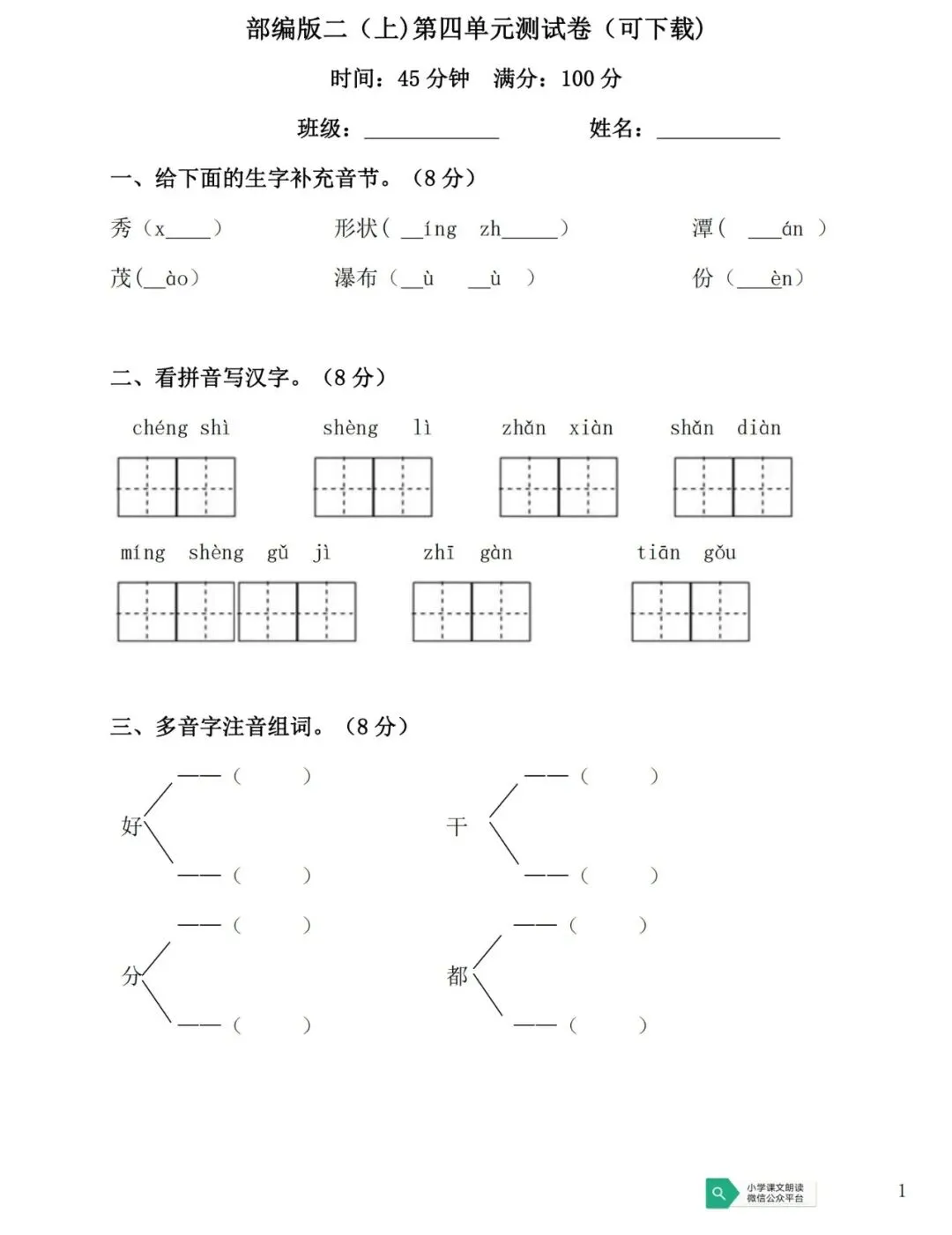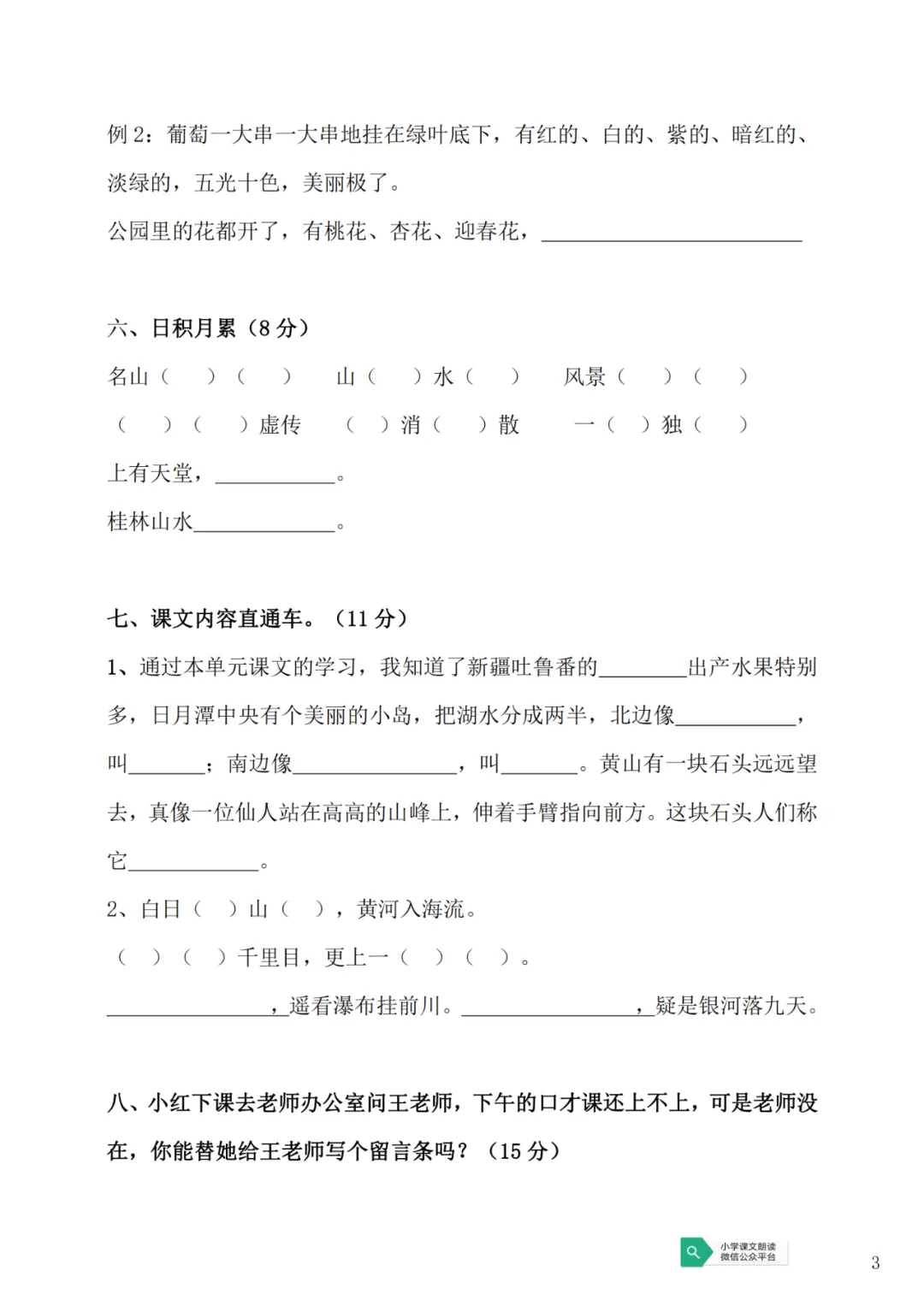 温馨提示:点击文末阅读原文可下载部编版二(上)第三单元测试卷2