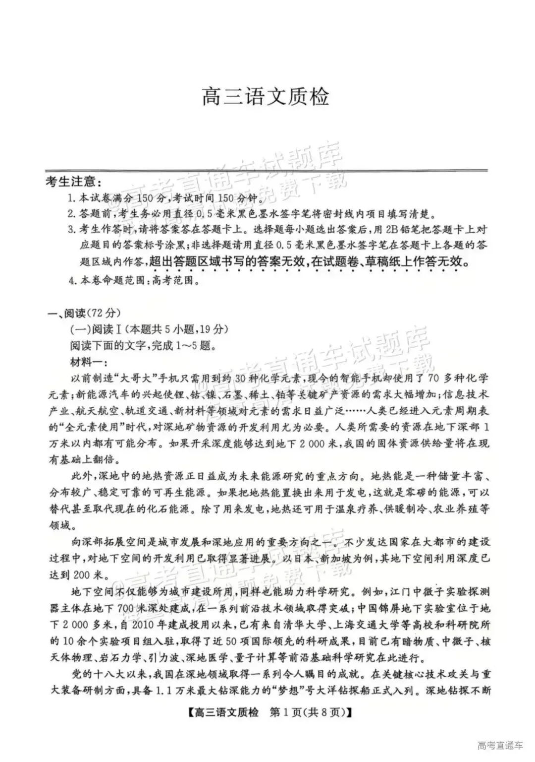 素材来源丨高考直通车试题库