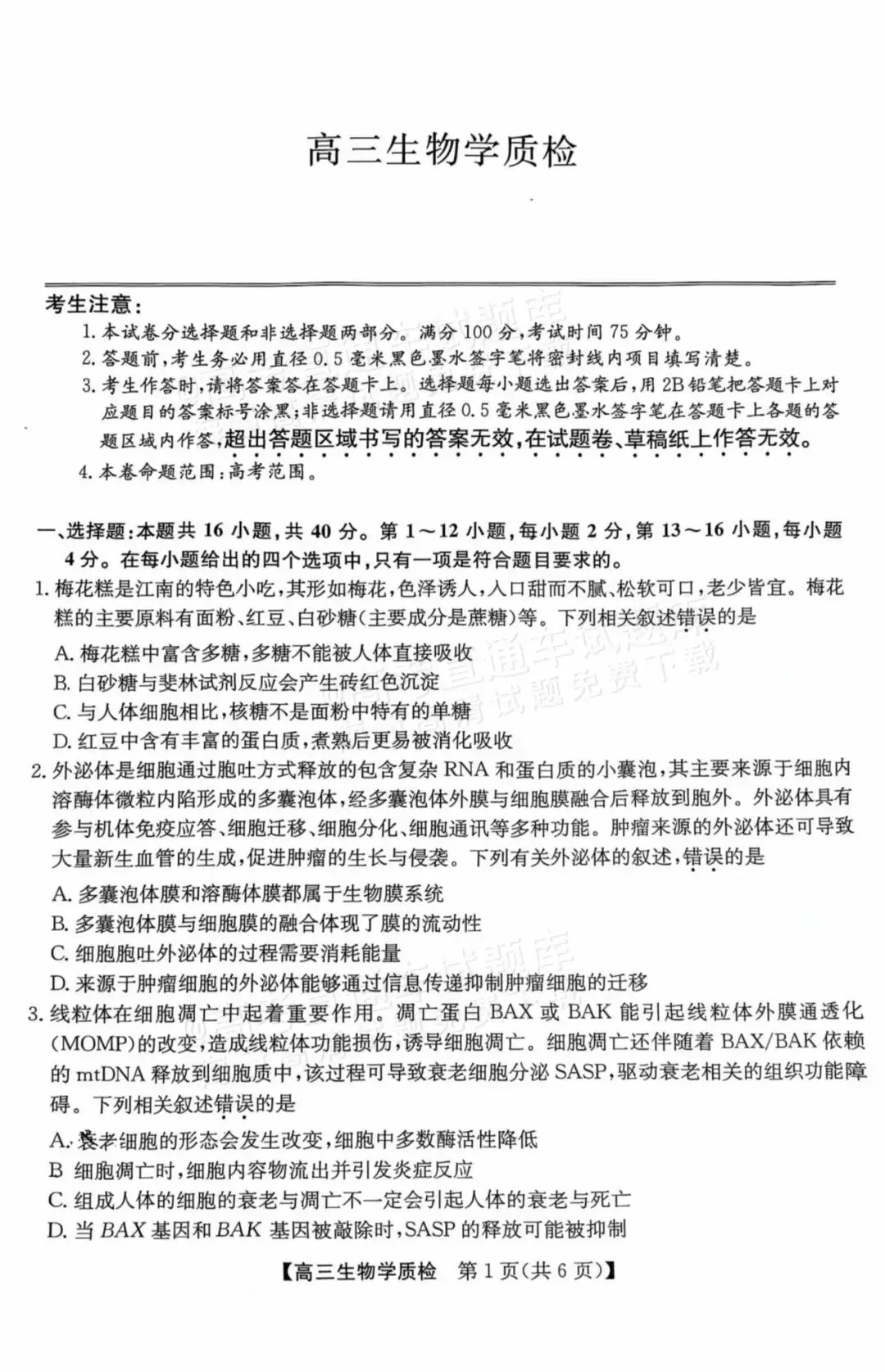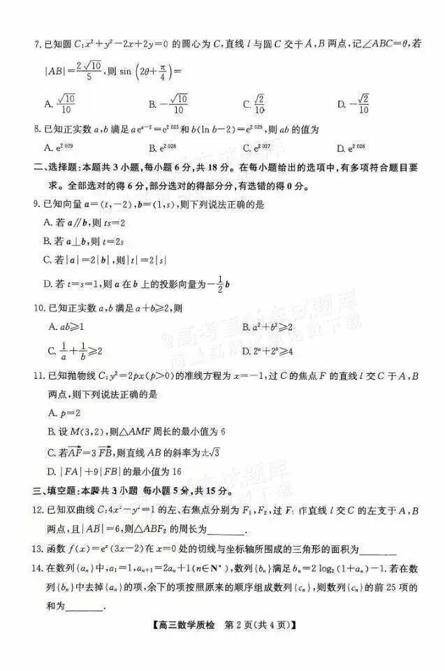 2026届梅州高三上期末考(后台发送“梅州”)