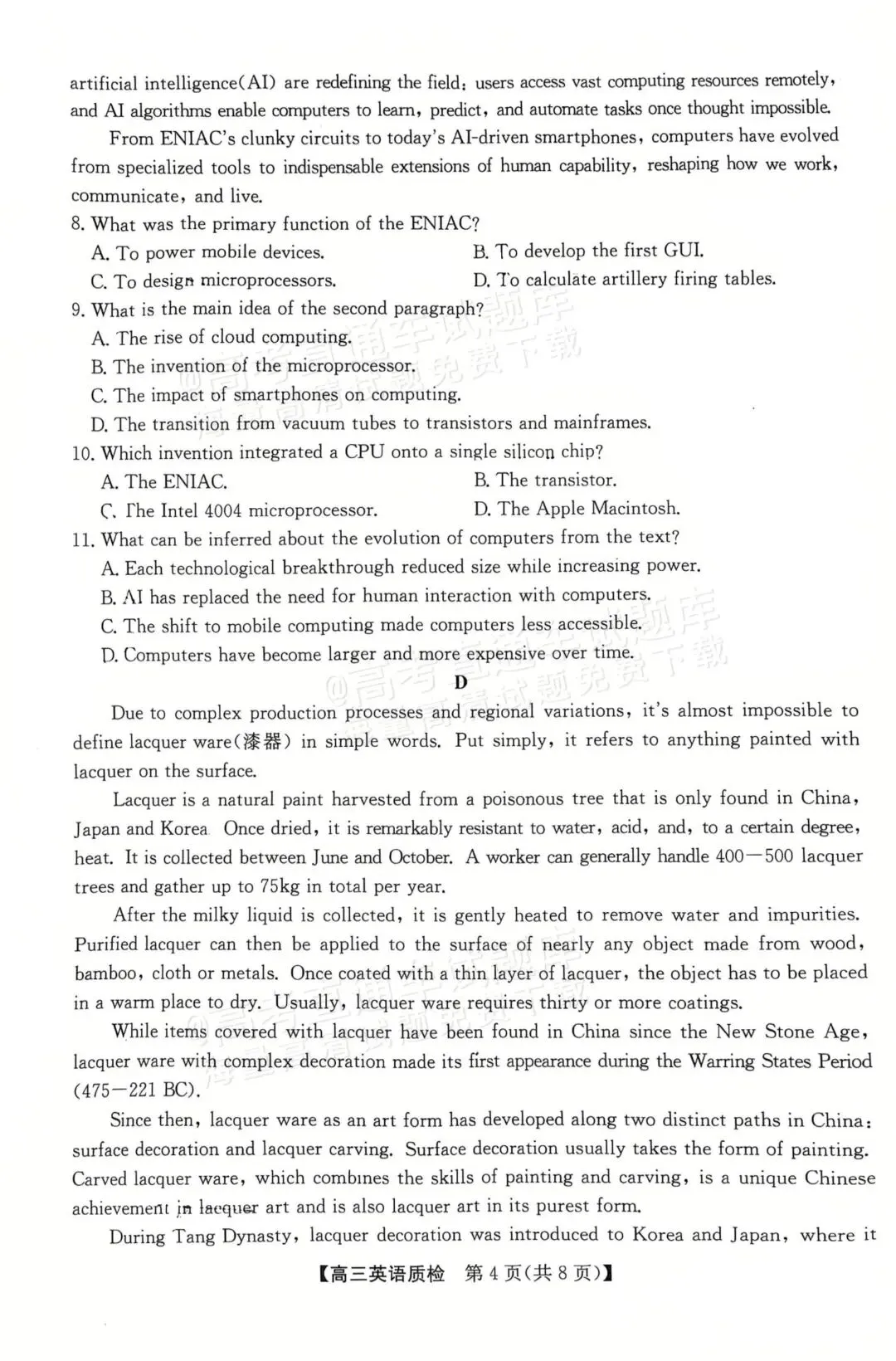 当前位置:首页>考研真题>高清可下载!2026梅州高三期末考全科试题答案汇总