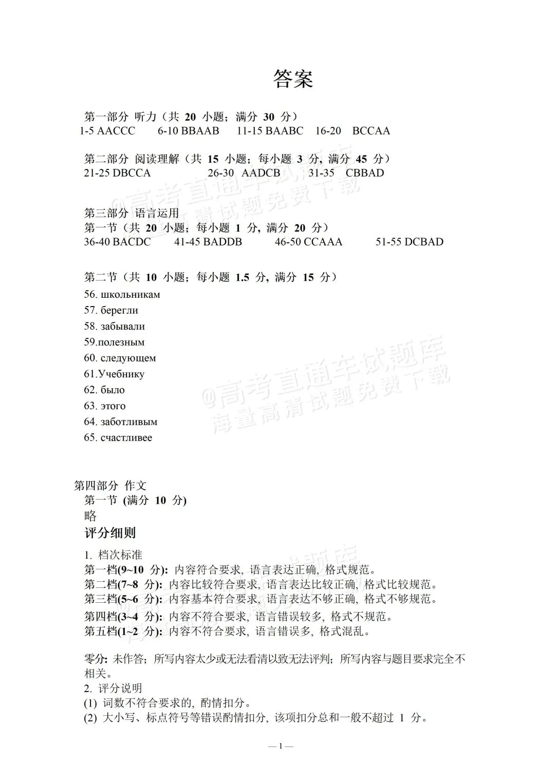 俄语答案