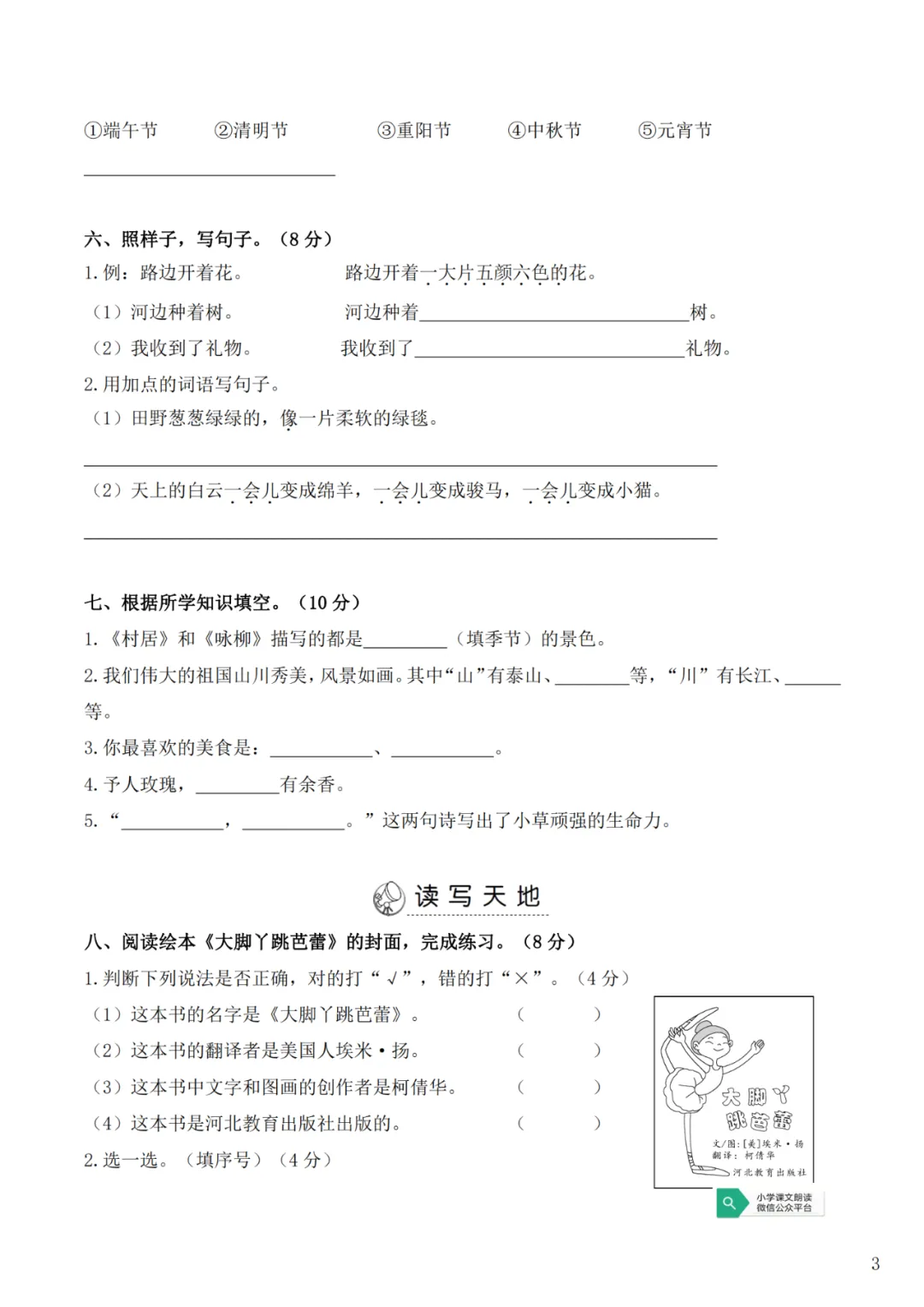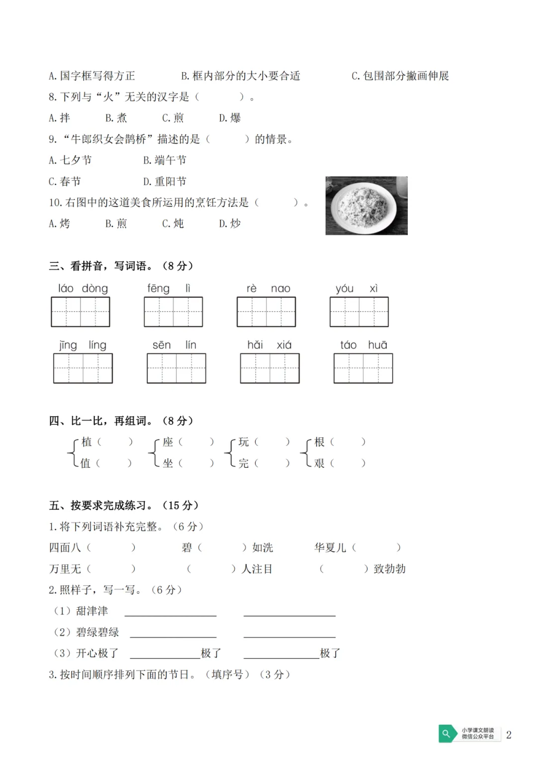 二年级(下)第四单元测试卷1温馨提示:点击文末阅读原文可下载