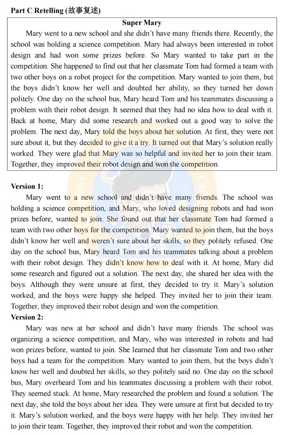 Part C Retelling (故事复述)