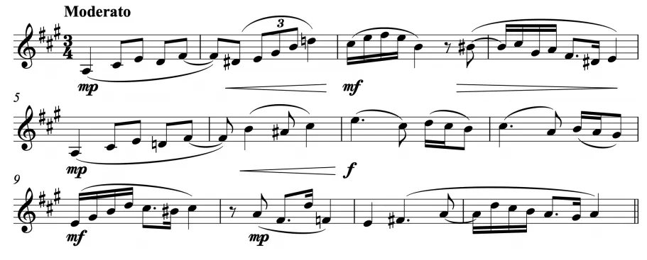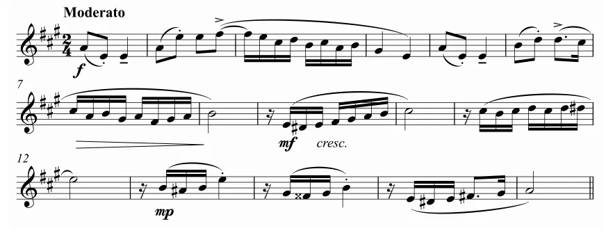 二声部旋律:三个升、降号以内的自然、和声、旋律大、小调式或民族调式。