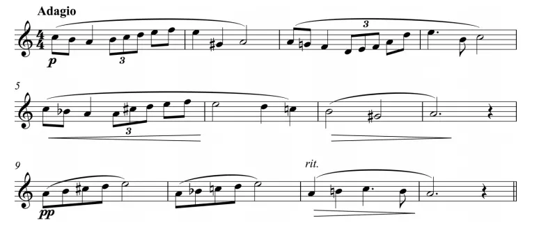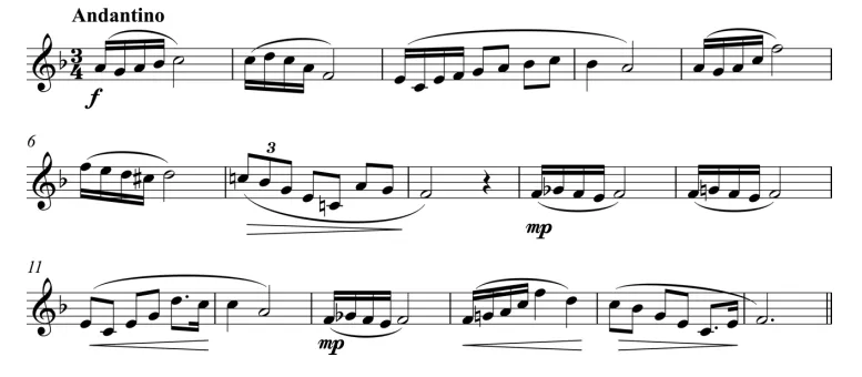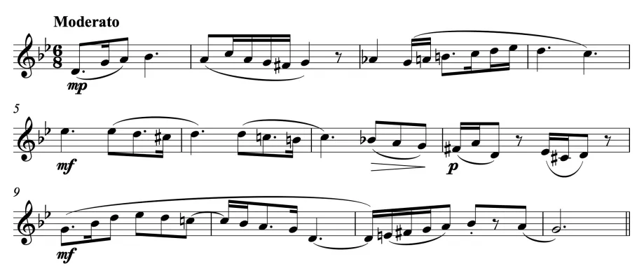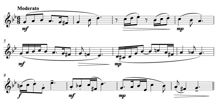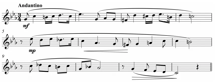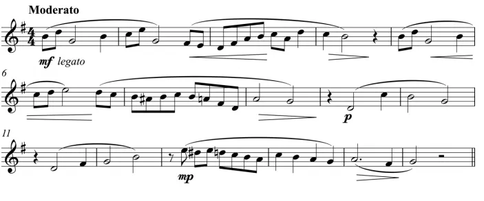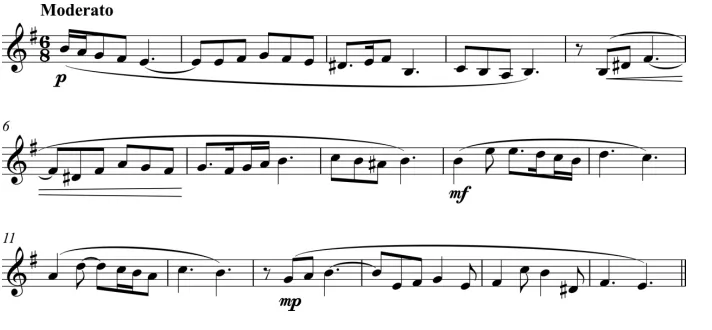 单声部旋律:两个升、降号以内的自然、和声、旋律大、小调式或民族调式。