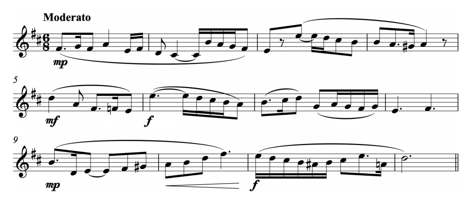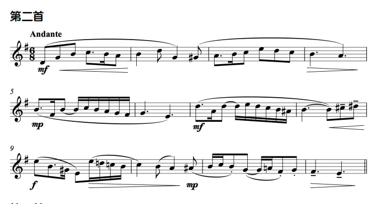 二声部旋律:两个升、降号以内的自然、和声、旋律大、小调式或民族调式。