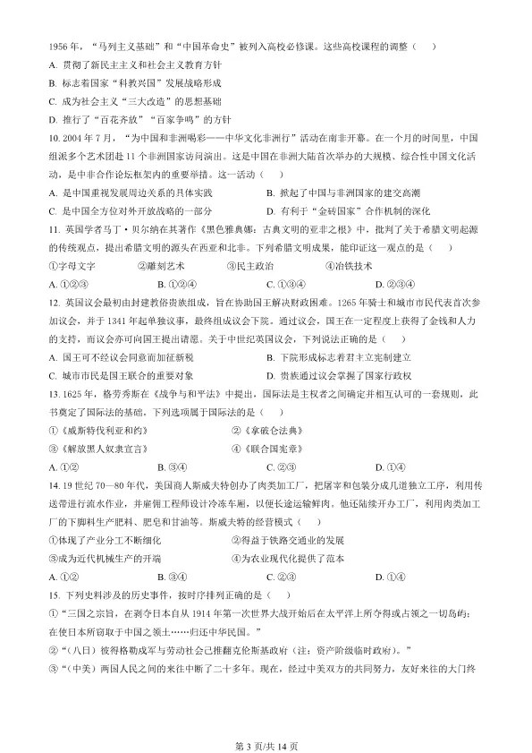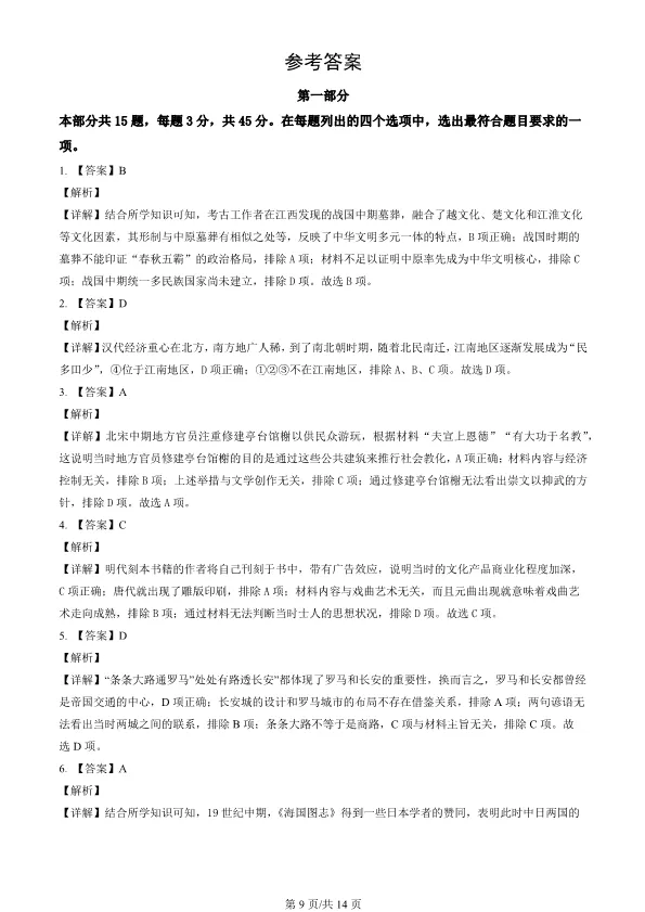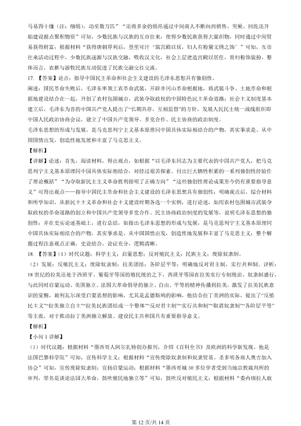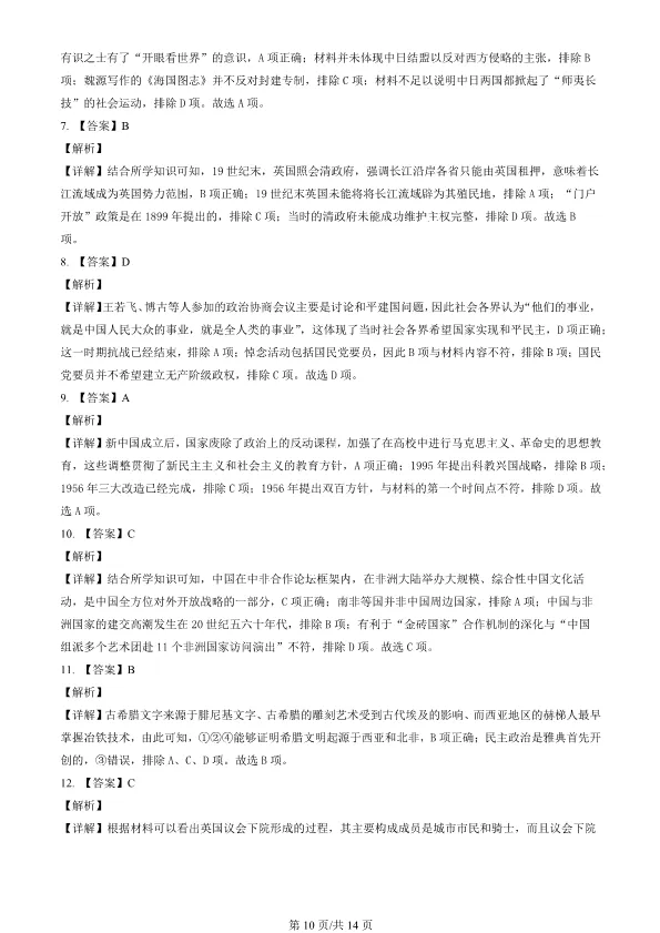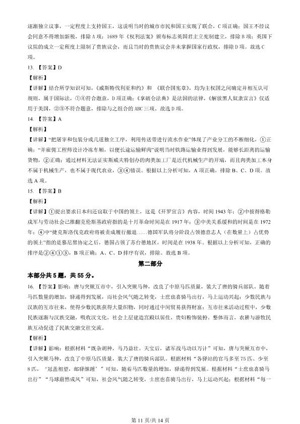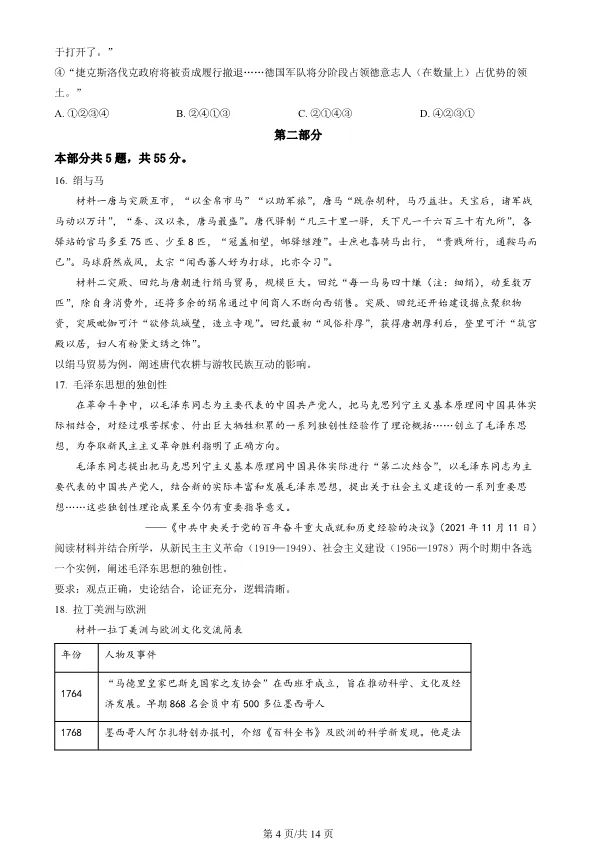 2022北京高考真题历史真题(有答案)【可下载】