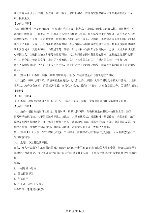 2019北京高考真题历史真题(有答案)【可下载】