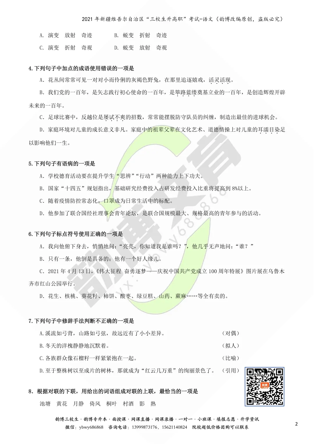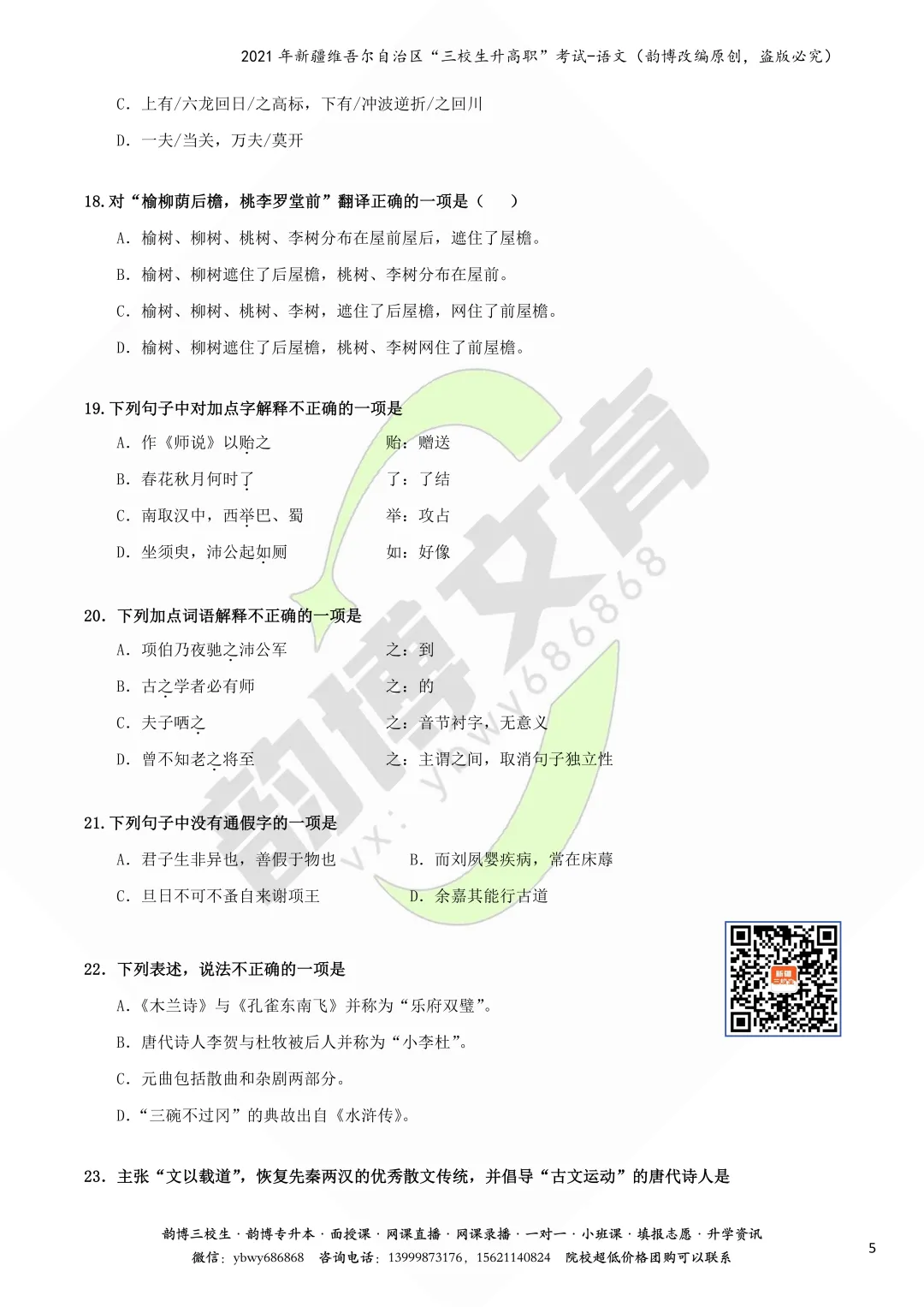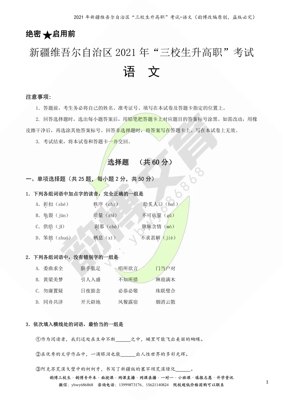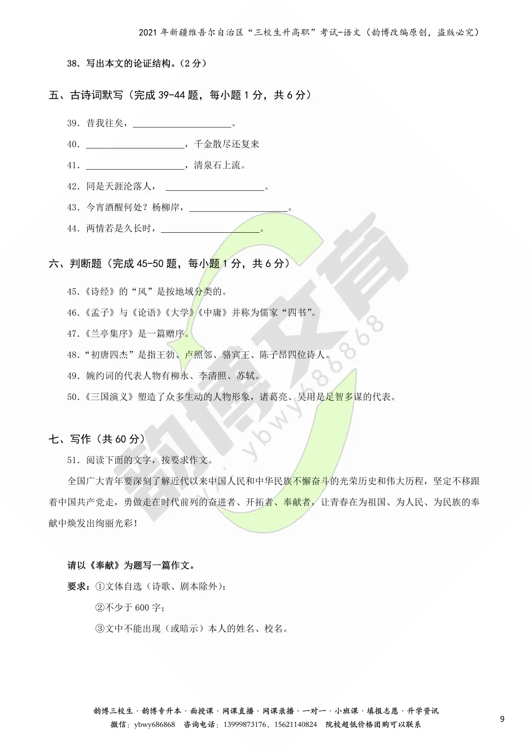 >新疆“三校生升高职”考试语文真题