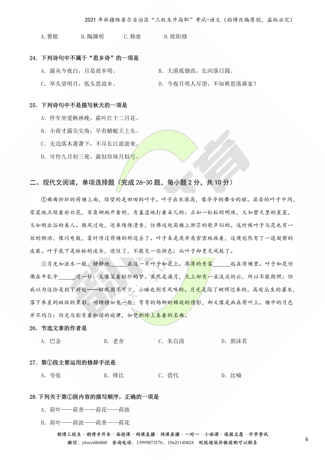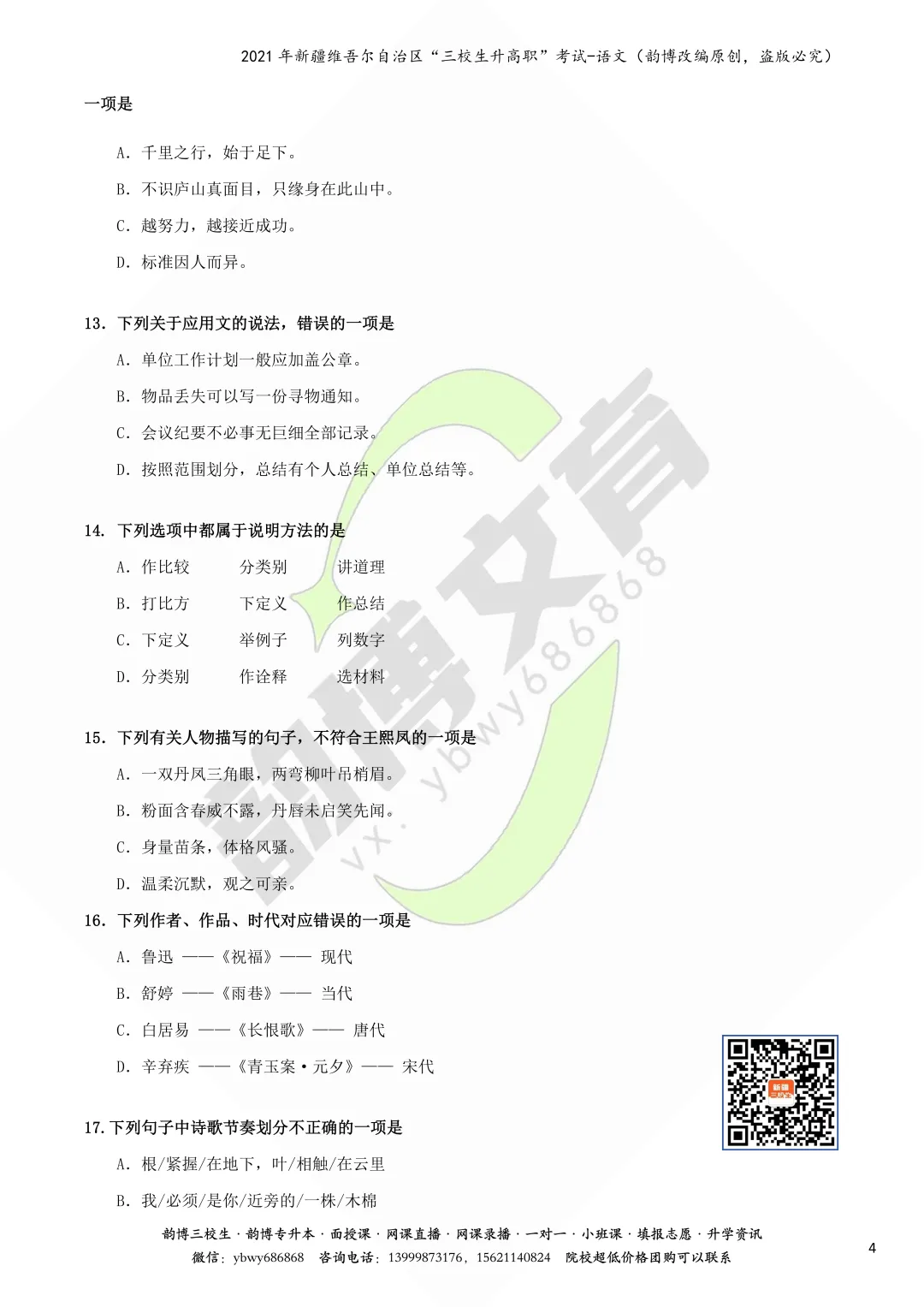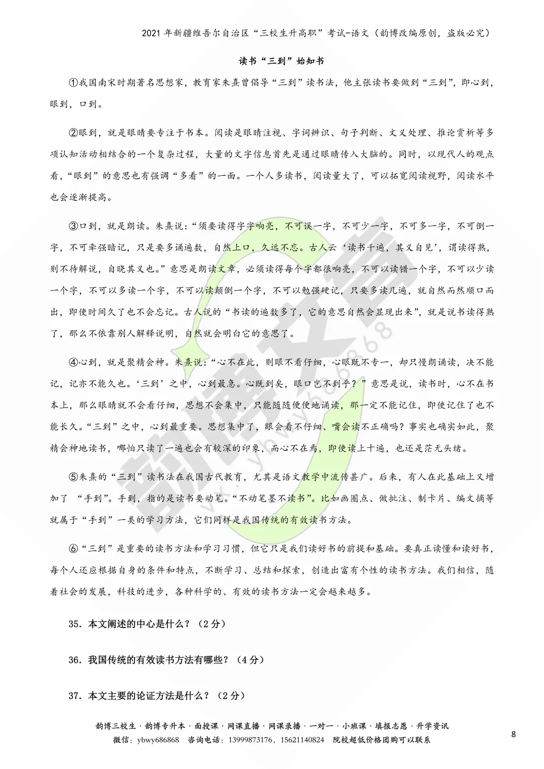 新疆“三校生升高职”考试语文真题