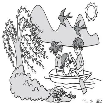 28.示例:春天来了,万物复苏。红红和爸爸妈妈来到公园里划船。他们一边划船,一边欣赏着美丽的春景,别提多高兴了。