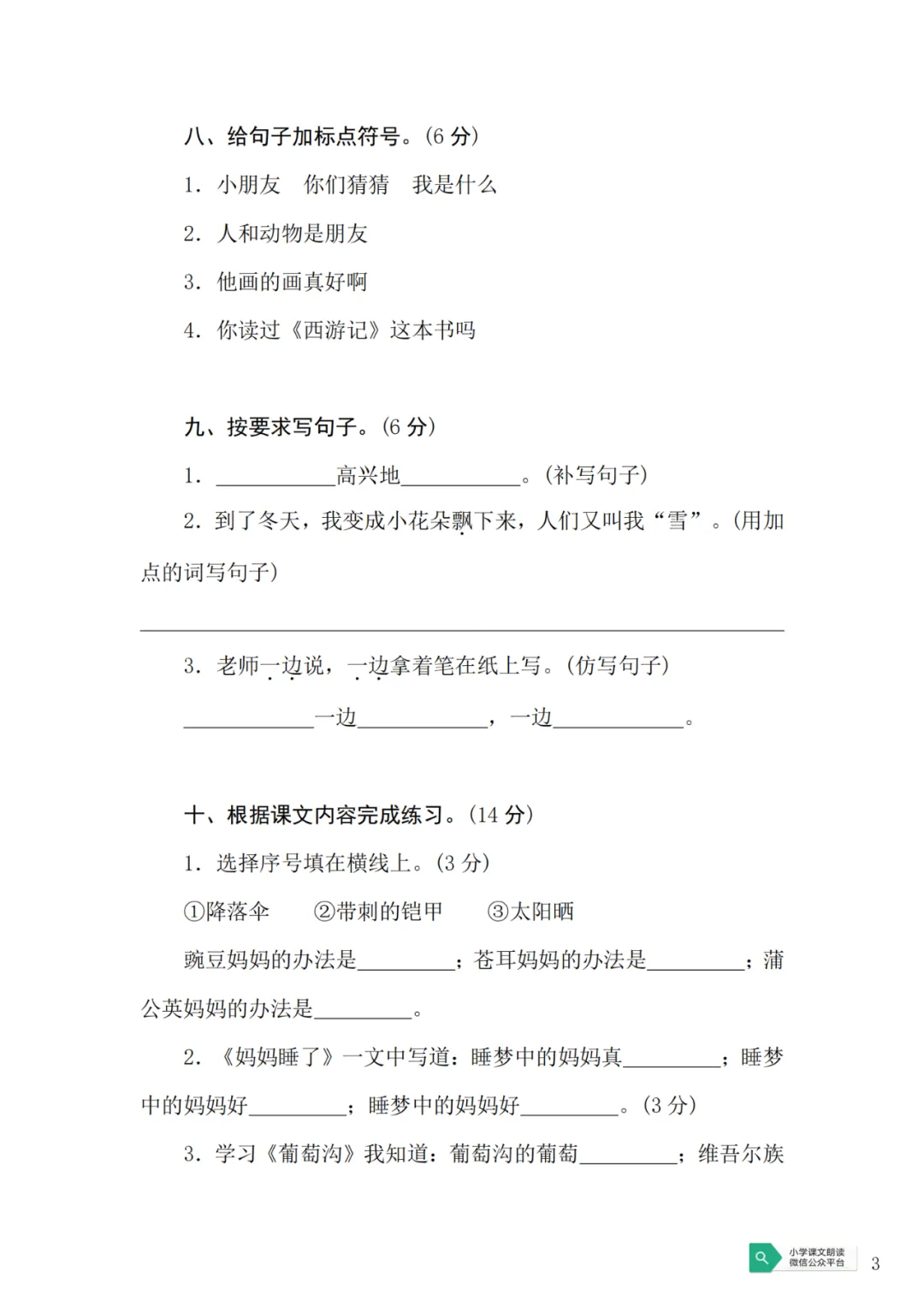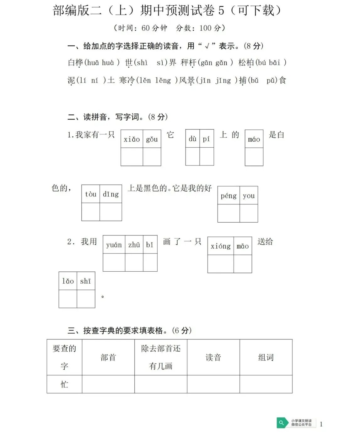 一(下)语文期末测试卷(可下载)