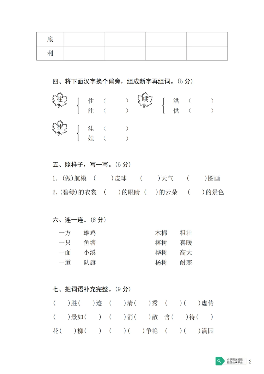 部编语文1-6年级上册第二单元测试卷(可下载)