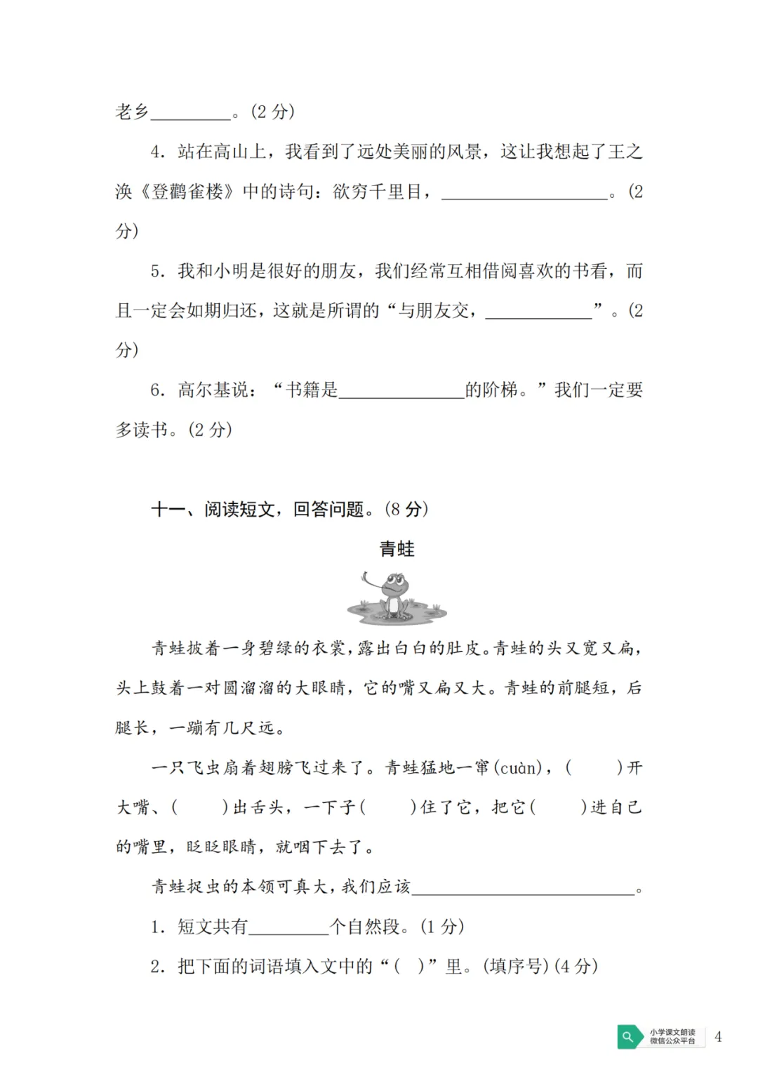部编版四年级语文上册期末试卷可下载打印(附答案)