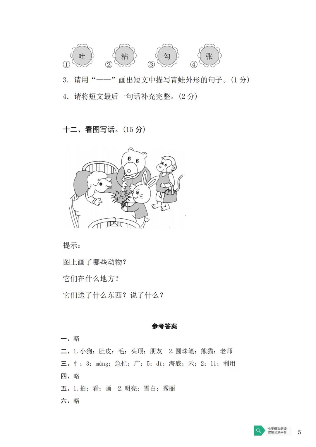 小学一年级语文下册期末测试试卷可下载打印(附答案)