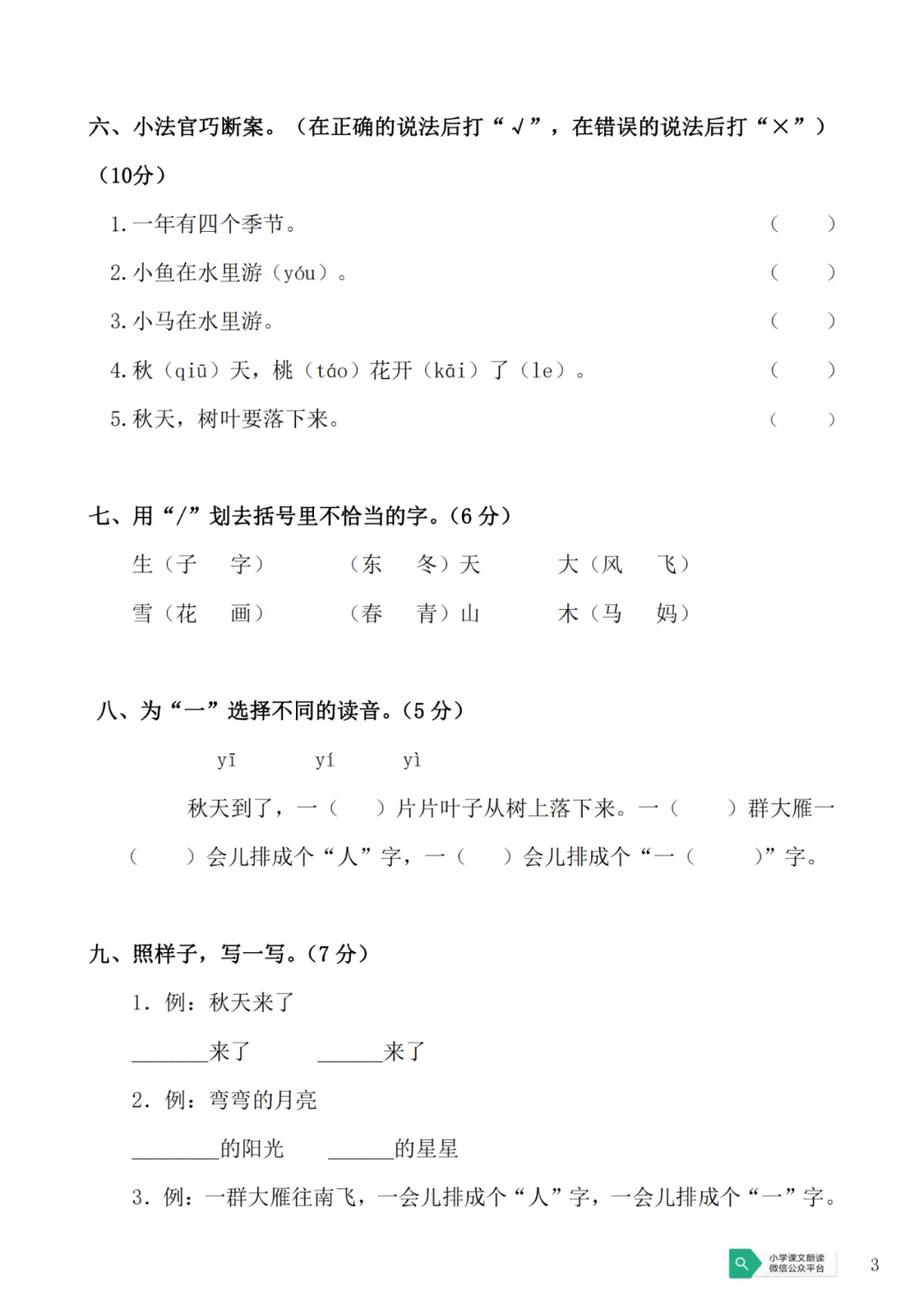 部编版一(上)第二次月考试卷