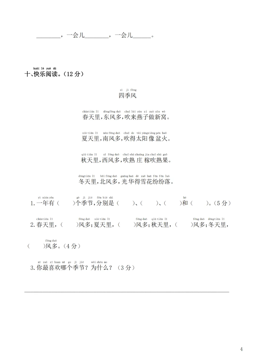 部编版一(上) 第四单元测试卷