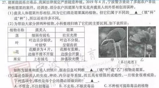 好几个地市的试卷里