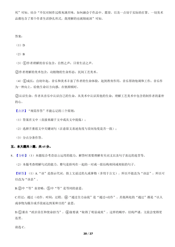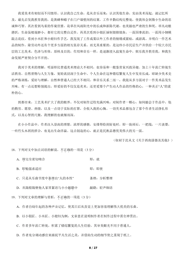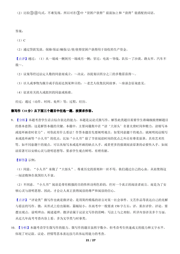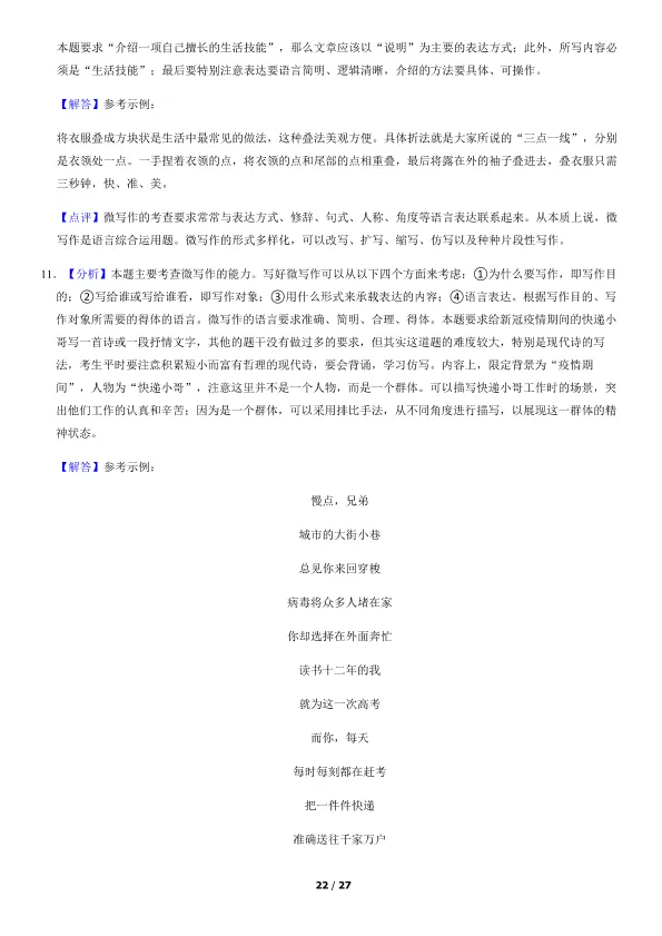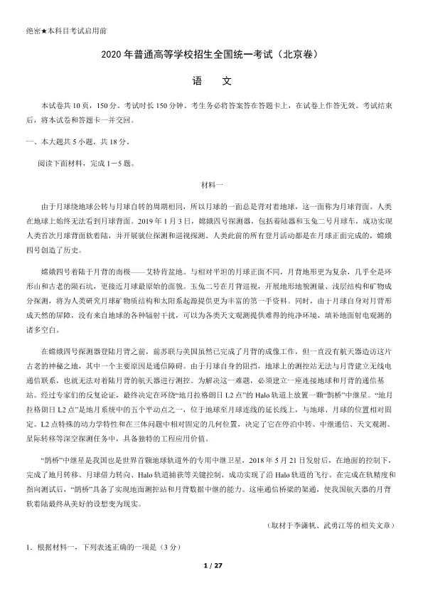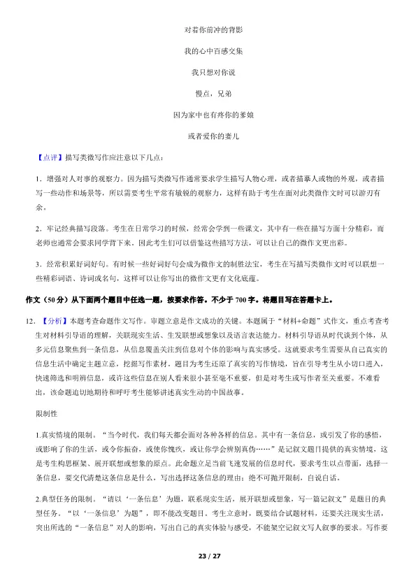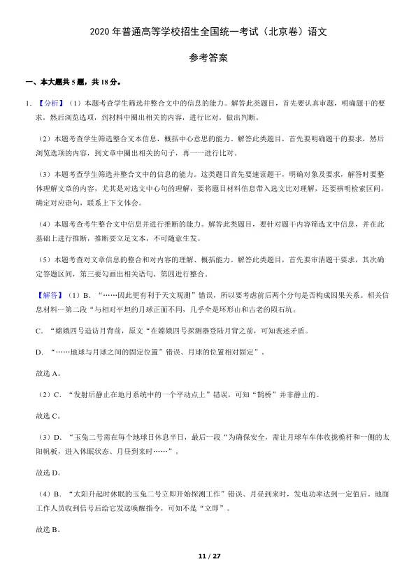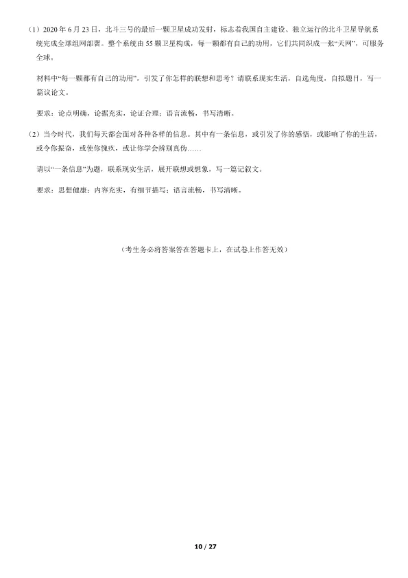 2020北京高考语文真题语文(有答案) 电子版试卷获取,后台回复:试卷