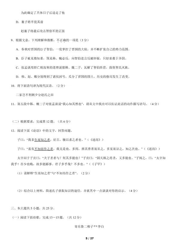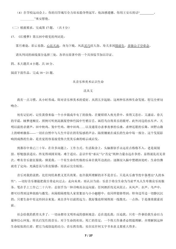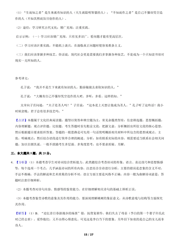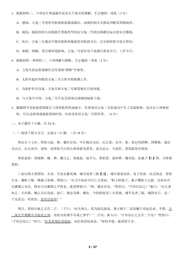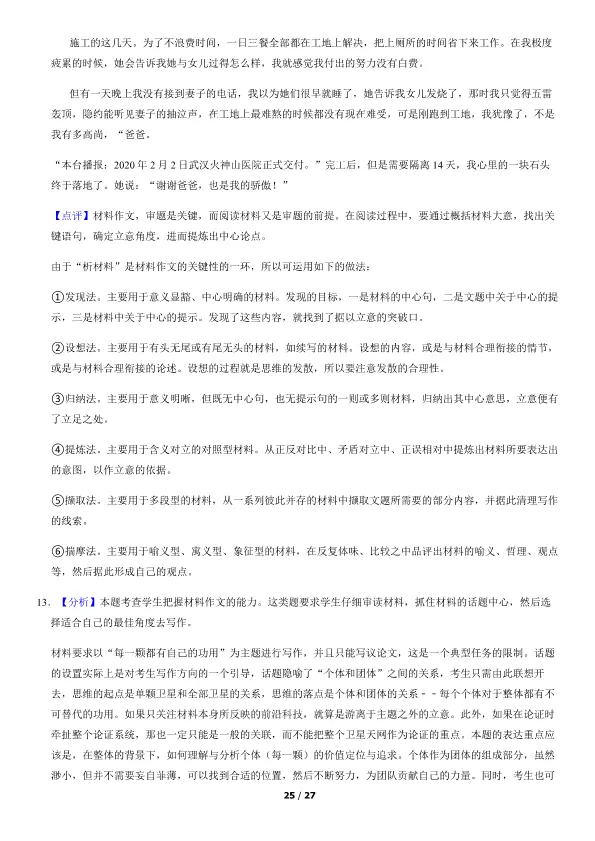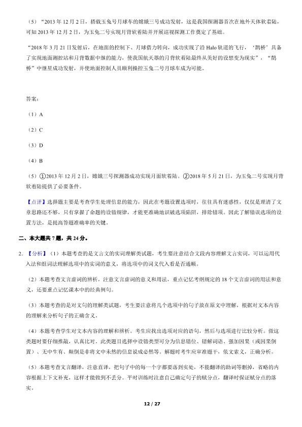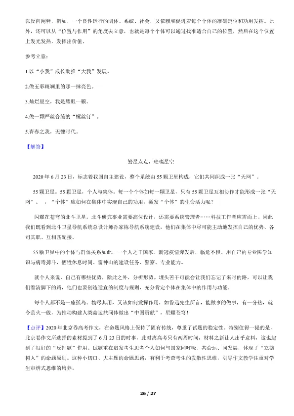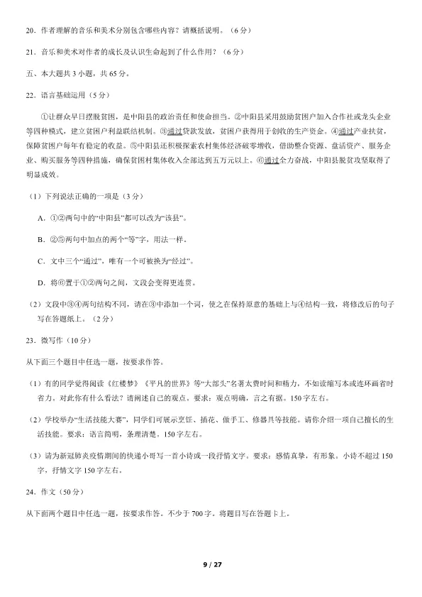 2020北京高考语文真题语文(有答案) 电子版试卷获取,后台回复:试卷