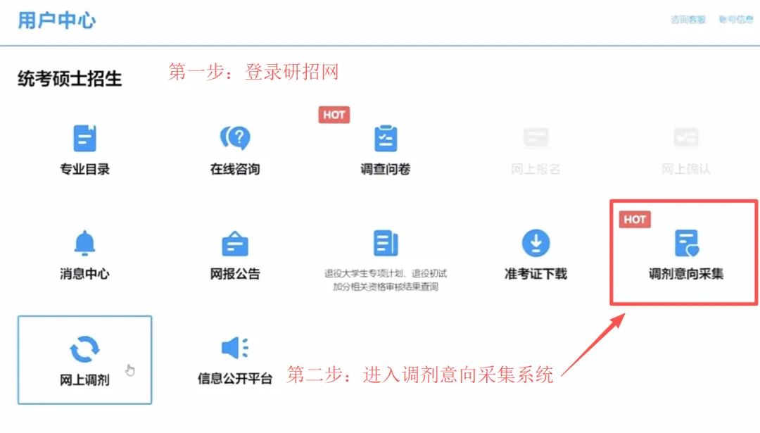 1.登录研招网:进入调剂意向采集系统。