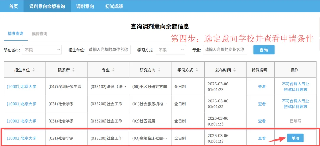 2.查询余额:查看院校缺额、要求。
