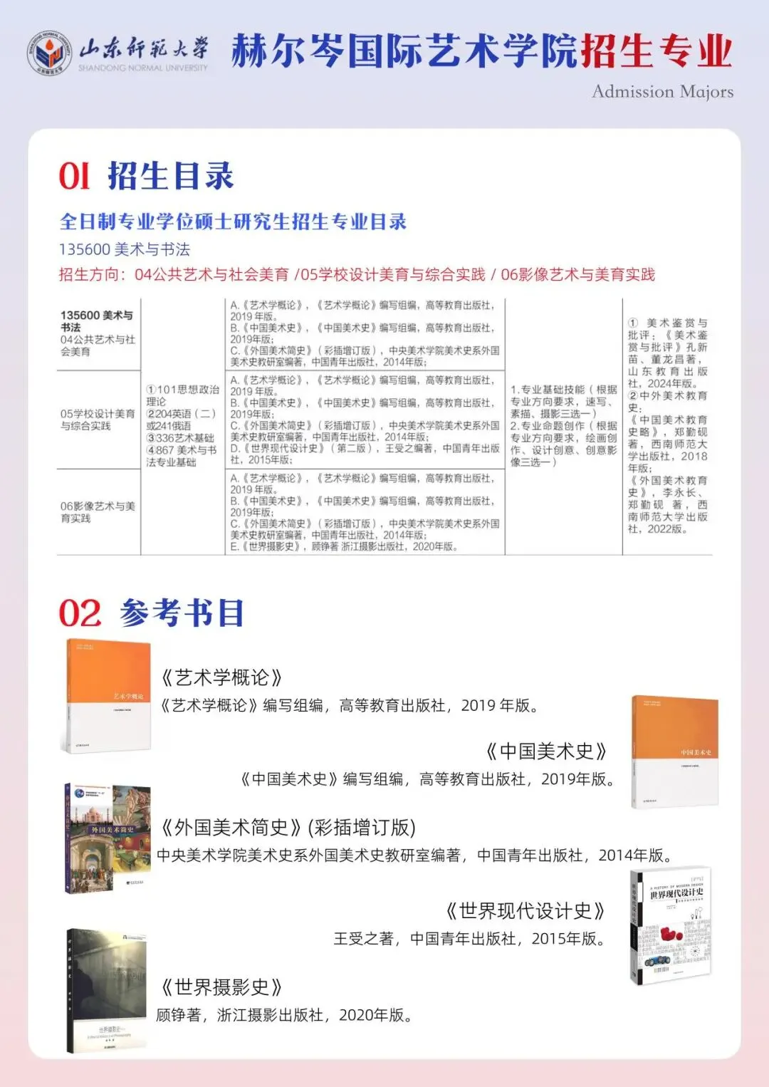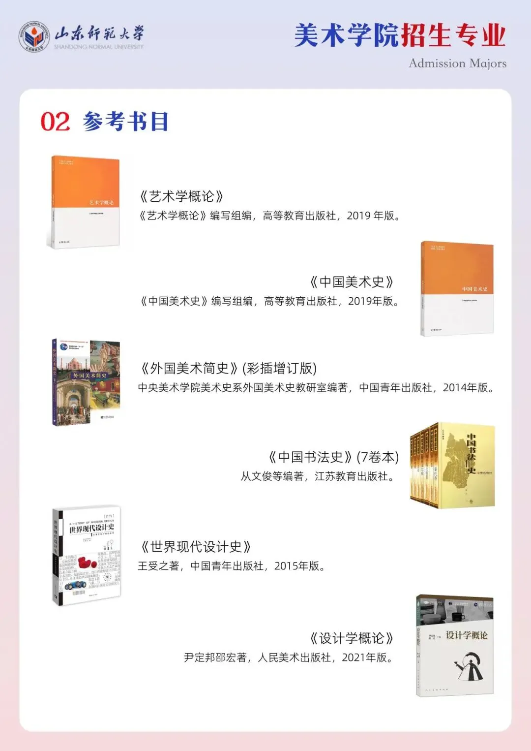 分学科推荐核心书目(国画:《中国绘画通史》《历代名画记》;设计: 《设计史》《世界现代设计史》;艺术学理论:《艺术的故事》《美学散步》),提炼书中核心观点与考点,节省备考时间。