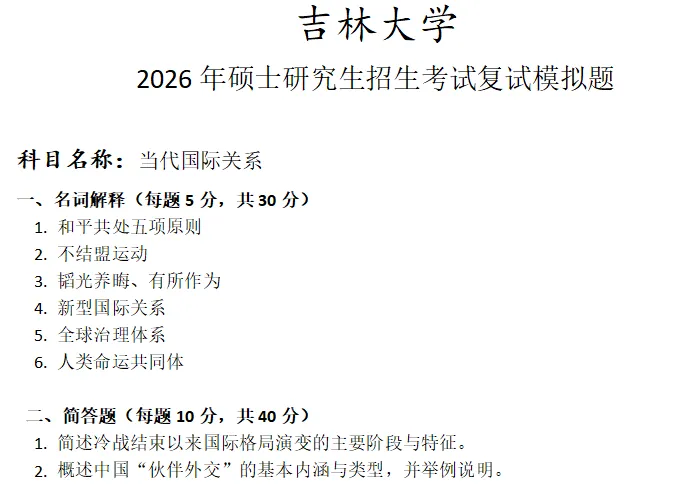 当前位置:首页>考研真题>吉林大学当代国际关系考研复试真题模拟