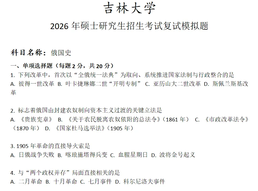当前位置:首页>考研真题>吉林大学俄国史考研复试真题模拟