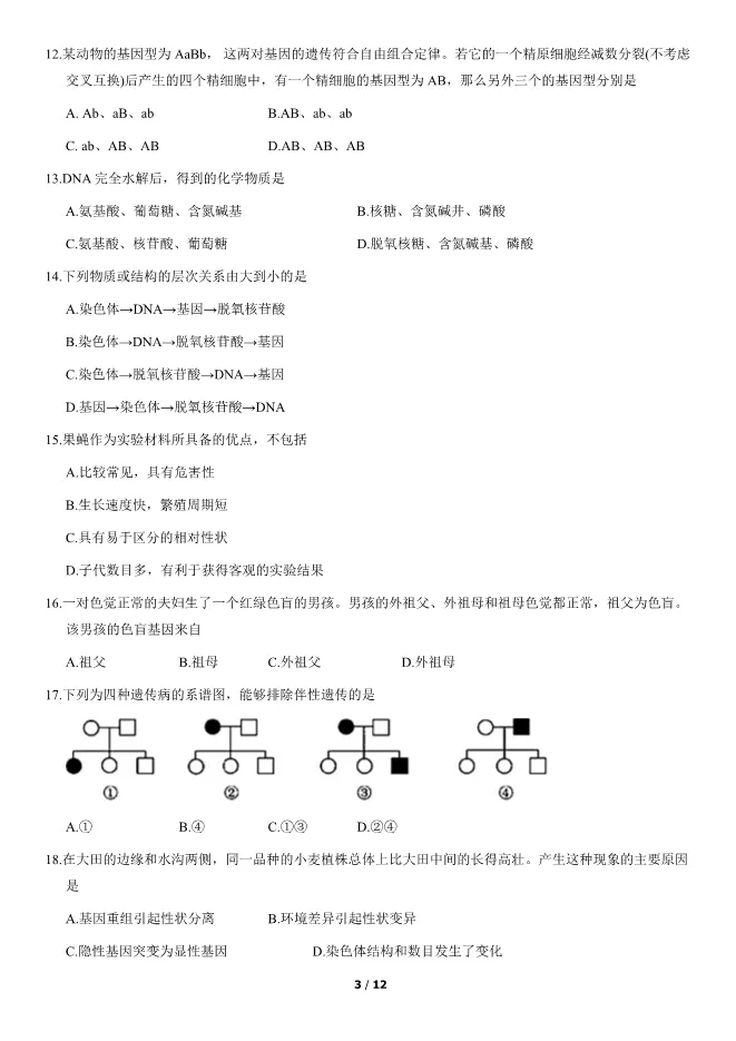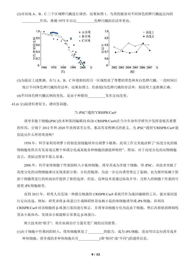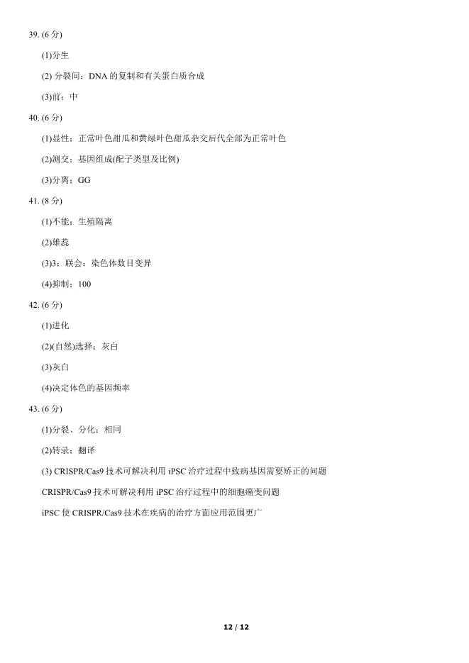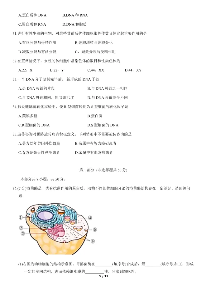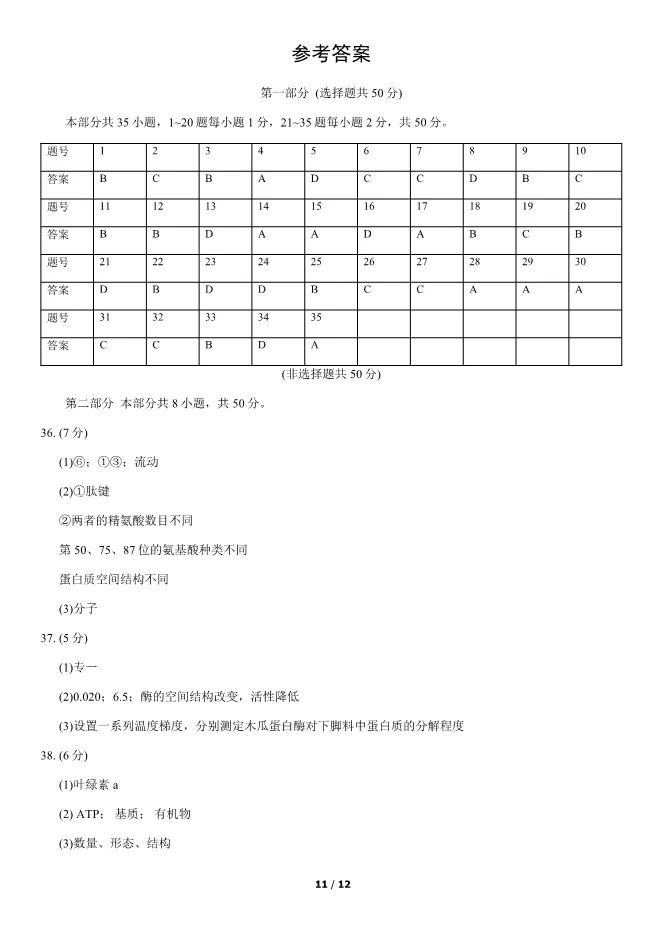 2021北京高中合格考生物试卷生物会考真题(第一次有答案) 电子版试卷获取,后台回复:试卷